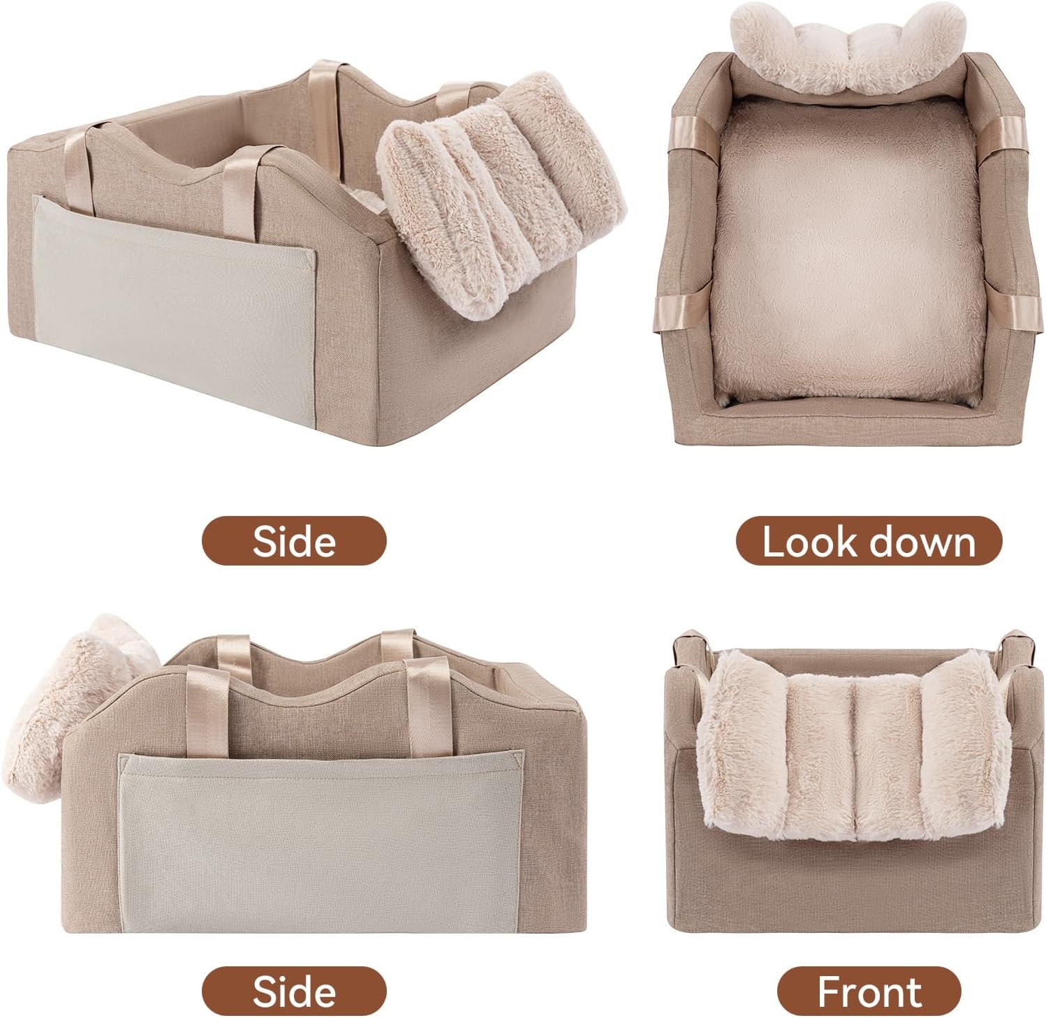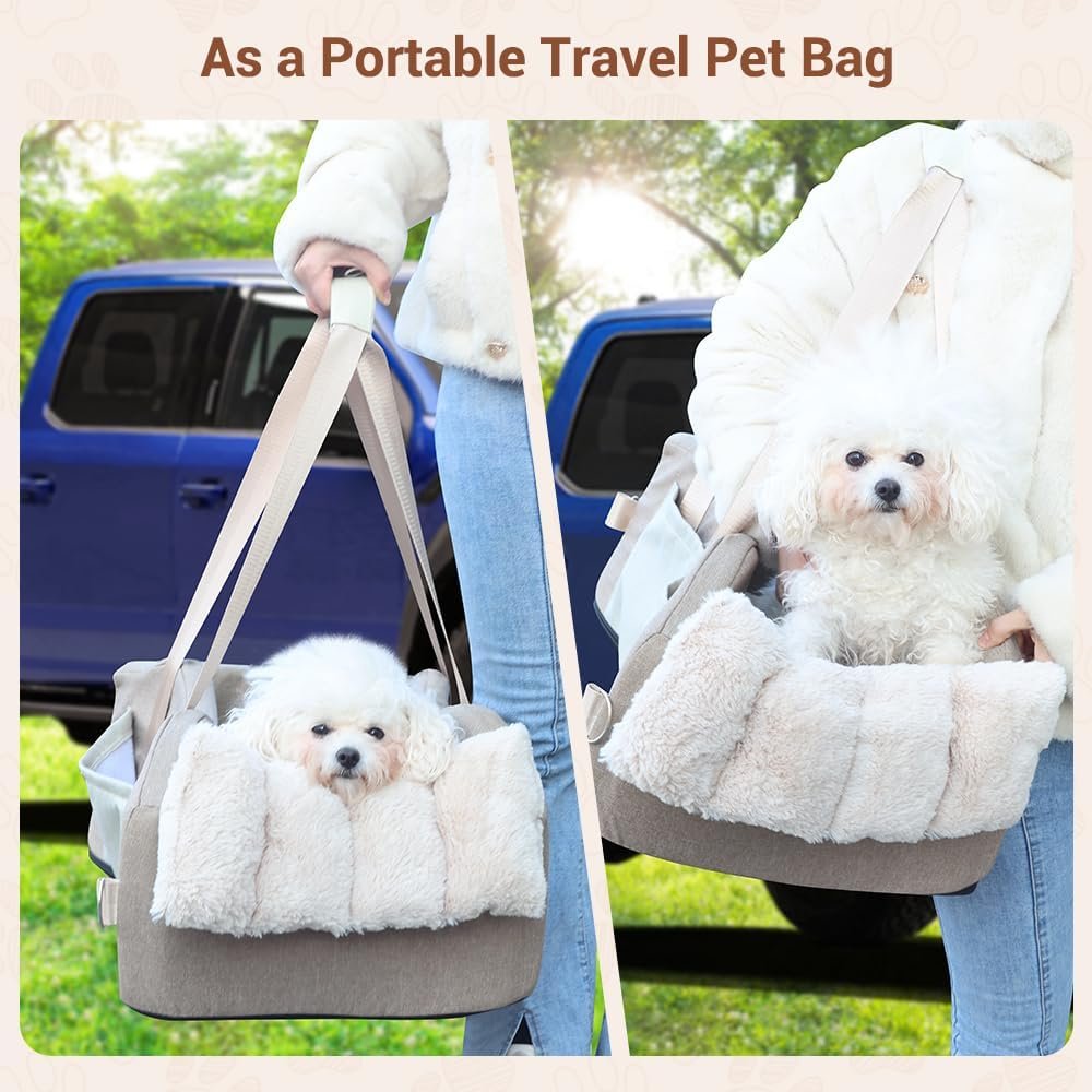 【Thoughtful Design】The dog car seat is easy to install, and the pad comes off for easy wash and care.It’s perfect for taking your pet when long trips.There are straps on both sides of the pet car seat, so you don’t need to change the pet travel bag when you get off the car to go to other places. When you don’t need to use the strap, you can stuff it into the pockets on both sides, and there can also be used to store some small items, such as: pet snacks, disposable changing pads, etc.