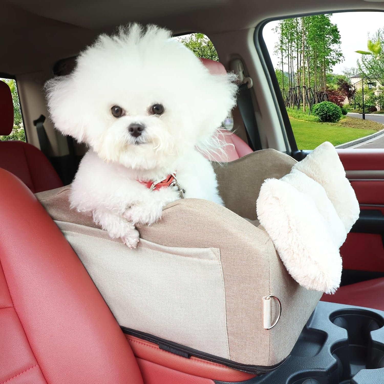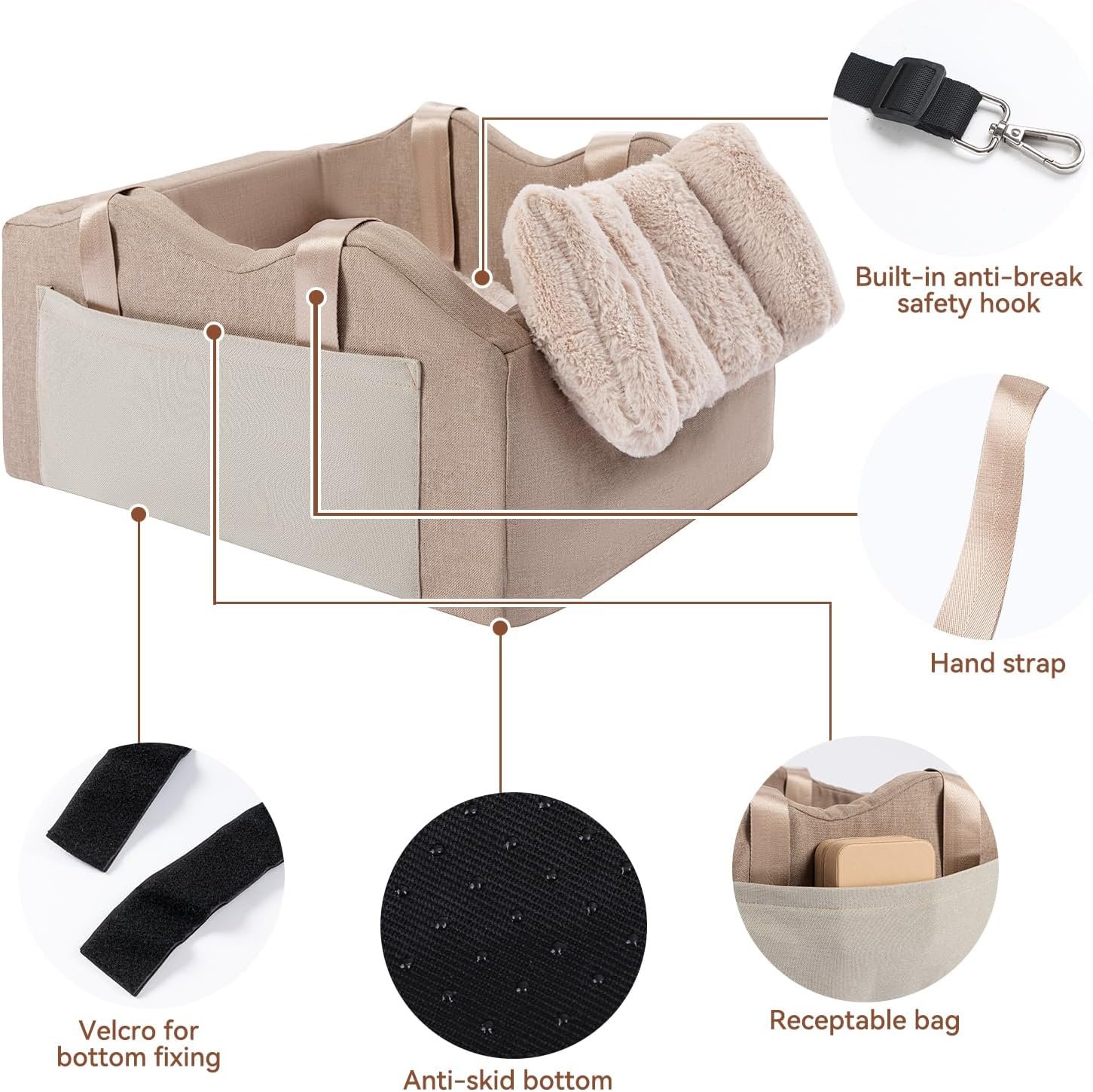 【Make Driving Much Safer】The pet car seat has a safety harness inside with a hook on one end to hook onto your pet’s collar.By limiting the range of pet activities, avoid it from affecting the driver’s driving.It has Velcro at the bottom, you can adjust the location of the Velcro according to the size of your center console, so that it can be tightly fixed on your car’s center console.