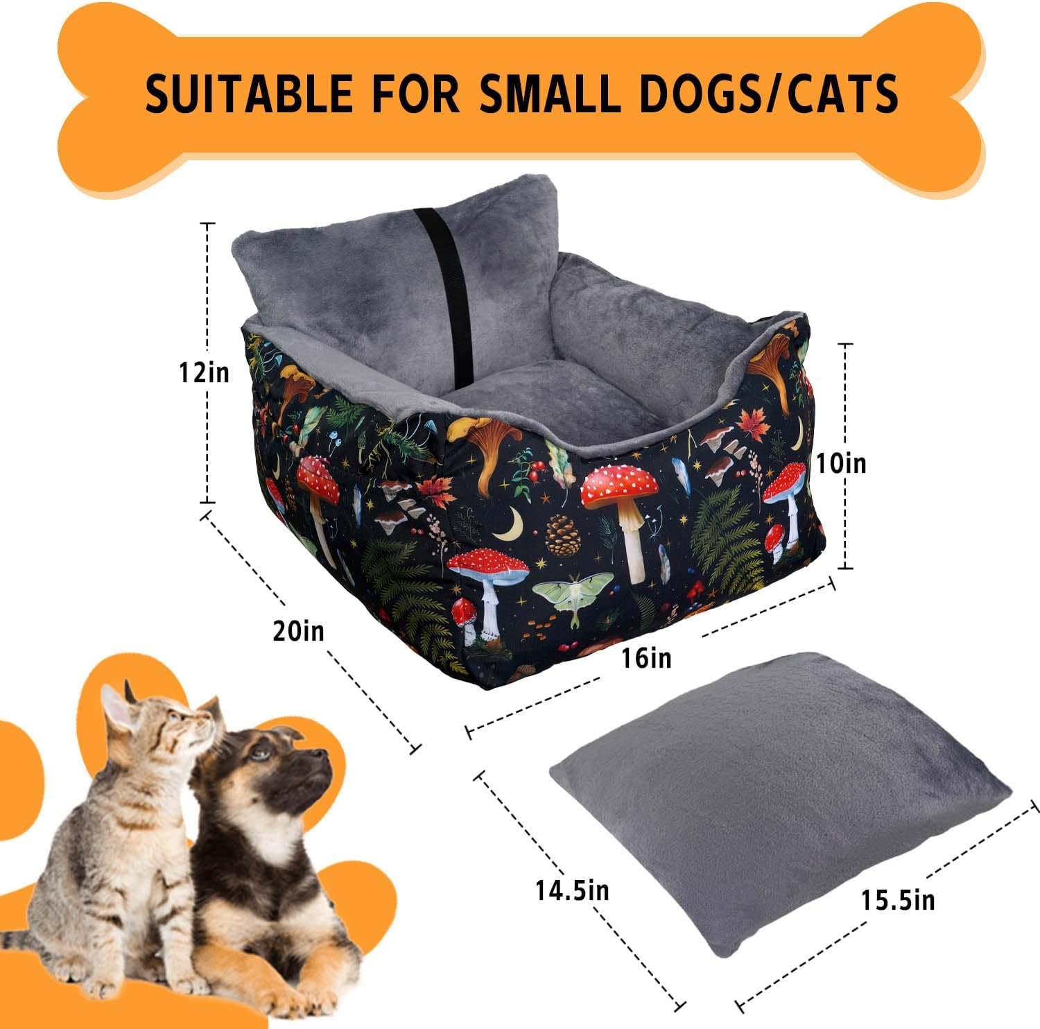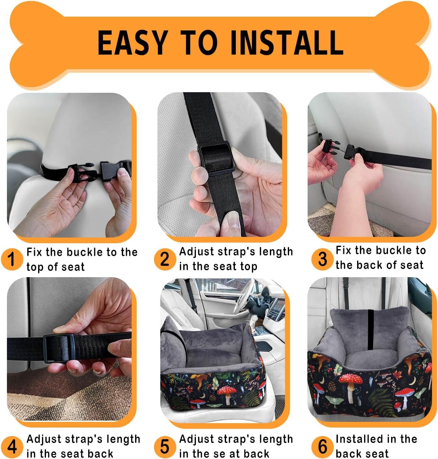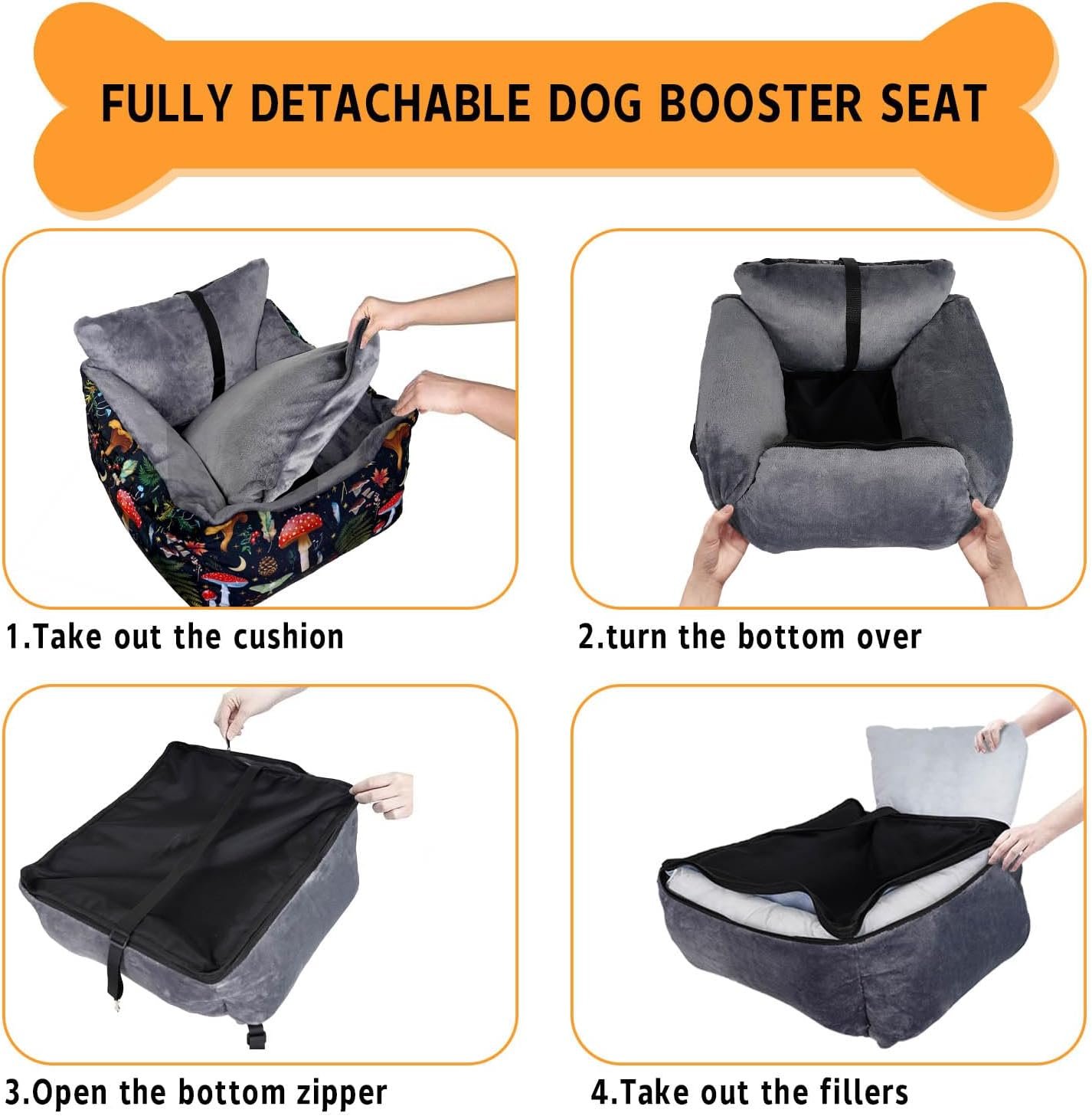 aSturdy and Comfortable Oxford Fabric: Dog booster seat is made of sturdy Oxford fabric with thicker coating . The shape is fixed by double needle sutures and does not collapse. The interior is filled with soft PP cotton, which is soft and comfortable and is more conducive to safe travel for dogs.Good for dog joints