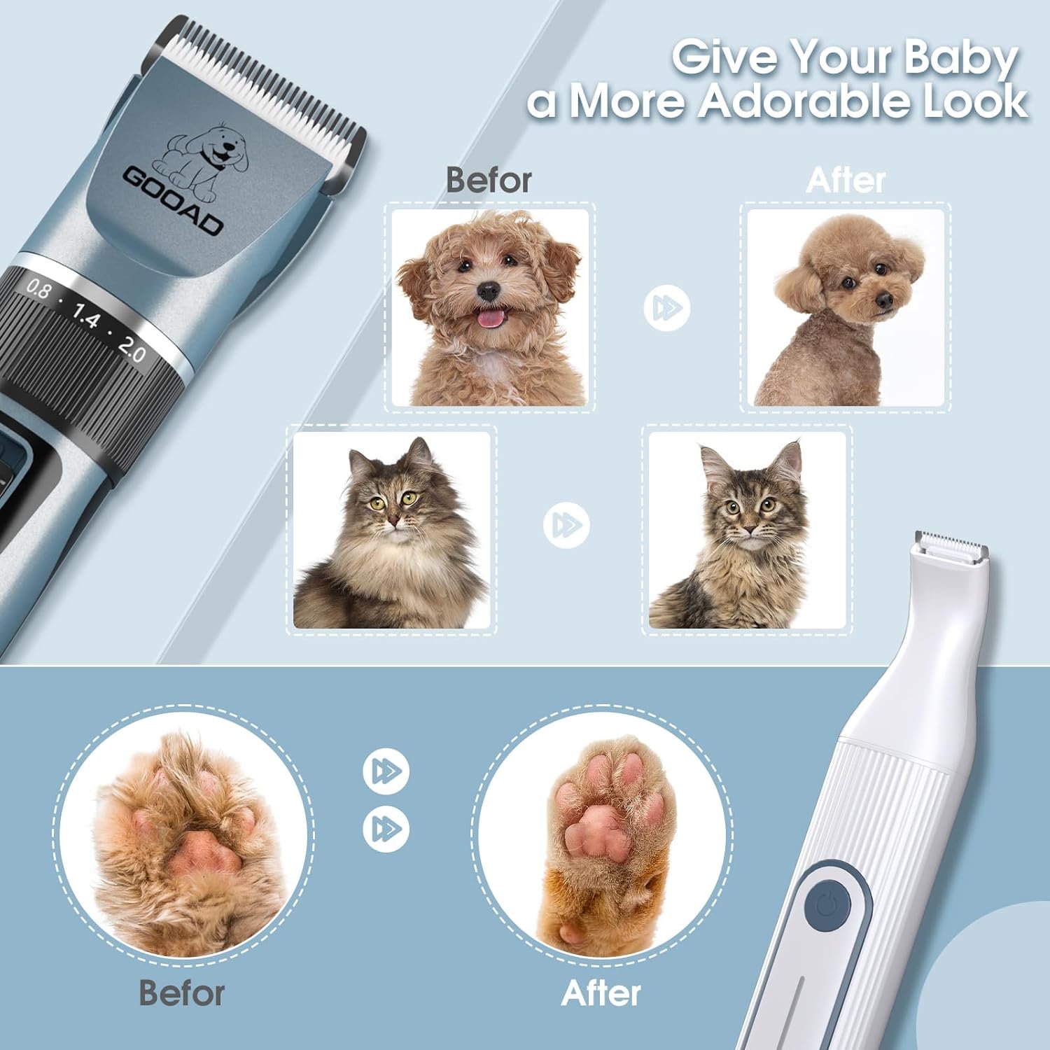 🐶GOOAD Dog Clippers and Dog Paw Trimmer Kit