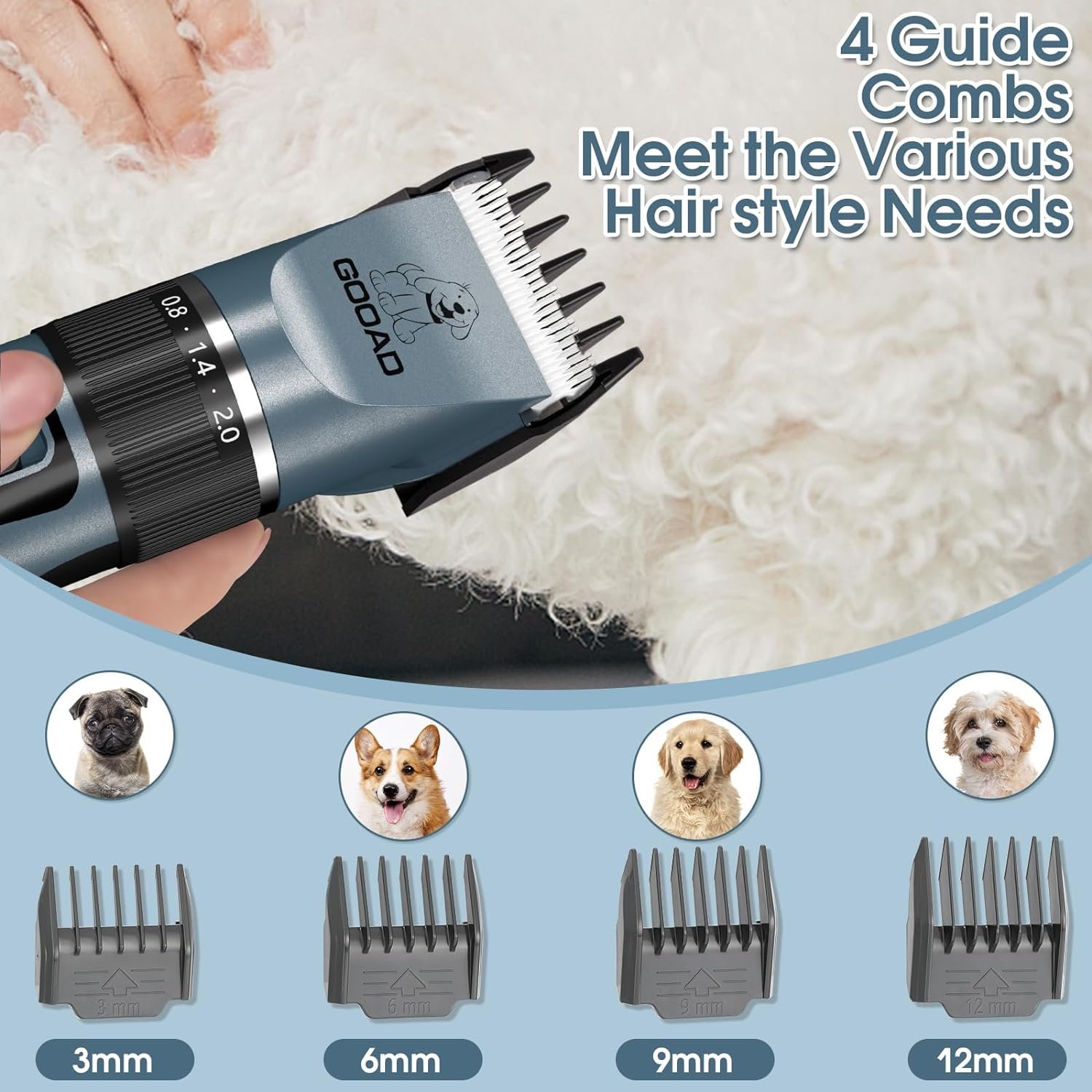 GOOAD pet clipper set keeps your pets always looking good, Complete new user friendly, it’s very useful both in home and profession salon use! 4 limiting comb, make haircut safe and easy. No more expensive bills for pet grooming, We hope our product will create an easier and happier experience both for you and your pet.