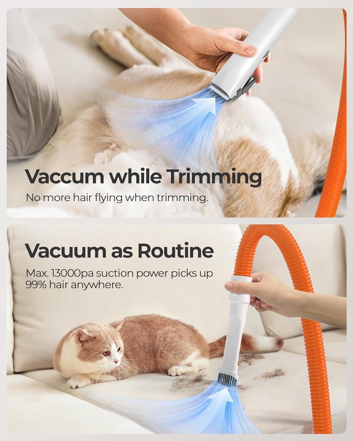 🐕🐈🐾【Effortless and Efficient Hair Removal】Our dog grooming kit boasts an impressive maximum suction power of 13k pa, ensuring 99% of shaved hair immediately captured. With this suction power, you can say goodbye to the tedious task of manually cleaning up after grooming sessions. The kit effortlessly removes loose hair, leaving your furry friend looking tidy, while saving you time and effort.