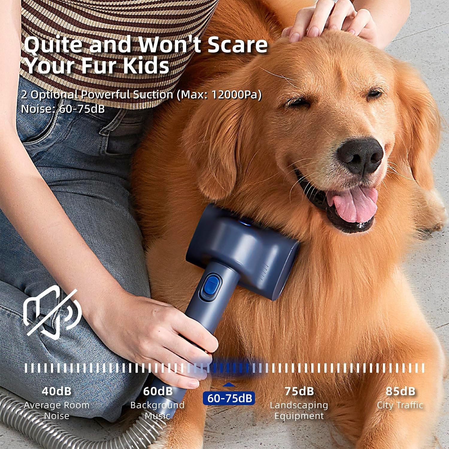 Low Noise 2 Optional Modes: The vacuum machine provides 2 suction modes, which meet different use requirements. The mini mode has only 60dB low noise to ensure your pet won’t be scared about the grooming. We recommend that use the mini mode and gradually increase it until they are fully adapted (Max noise: 75dB).