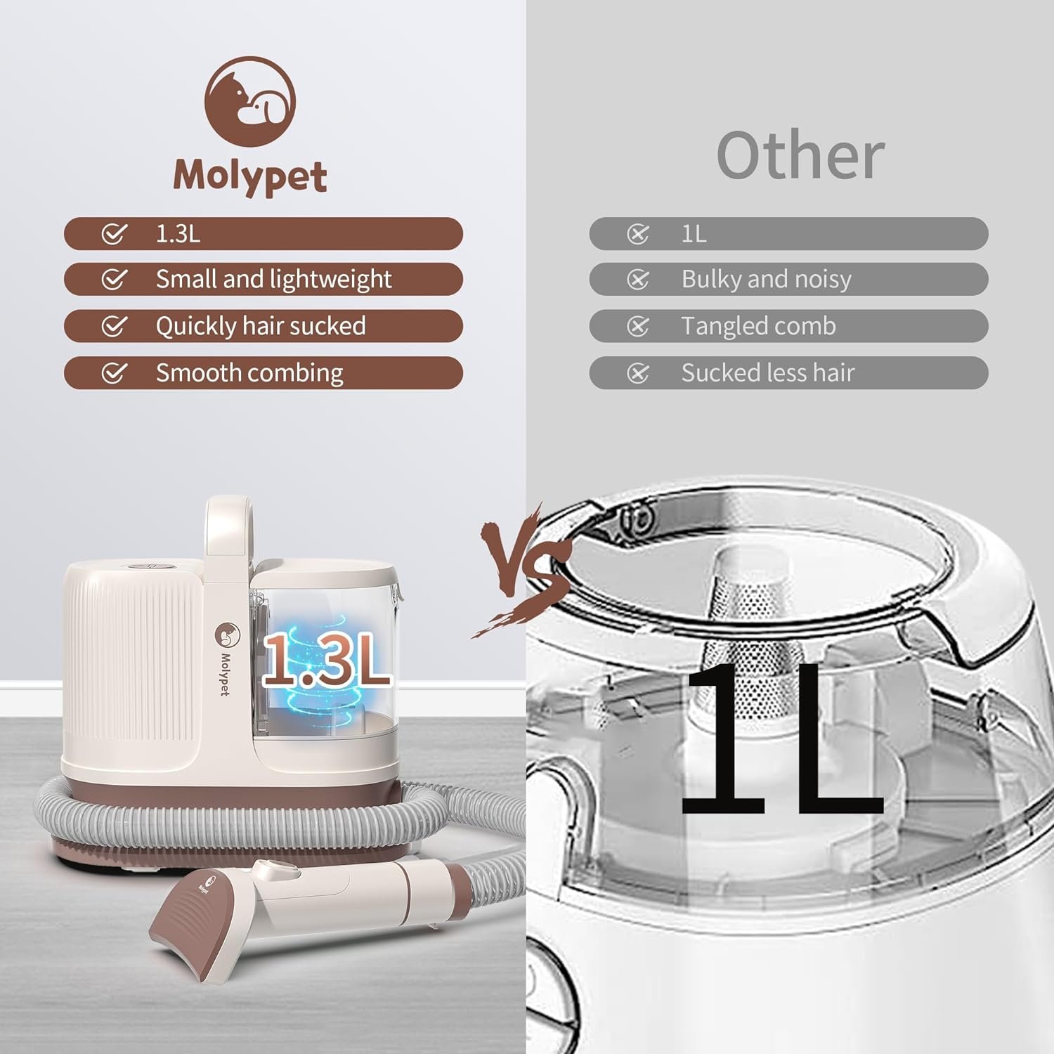 🎅🎄🎉🎁 【Low Noise and Detachable Dust Cup】 Our pet grooming kit is designed to be low noise and comes with a detachable large dust cup. Our pet grooming vacuum produces less than 52 decibels of noise at the initial suction level, and there are 3 adjustable suction levels to choose from