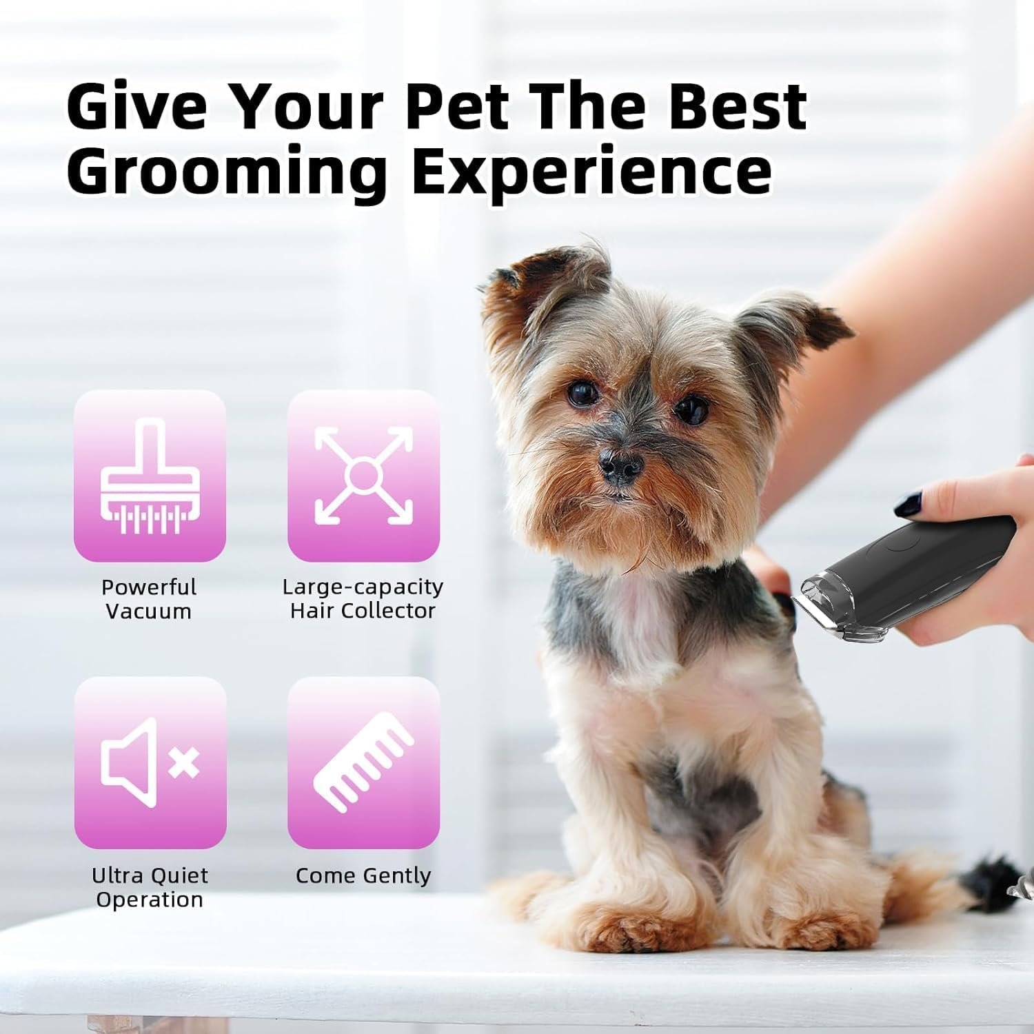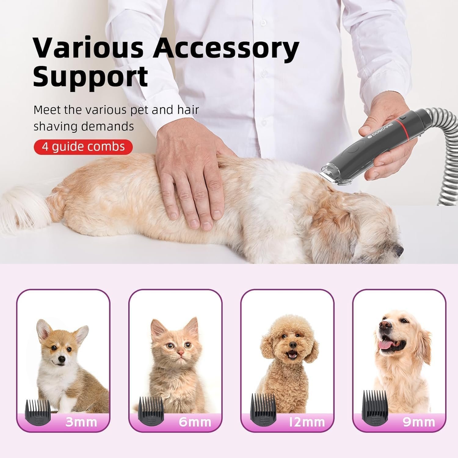 Pet Hair Management: 12000PA power of vacuum suction and 300W strength, this kit removes 99% of pet hair during grooming, trimming, and deshedding. Enjoy quiet operation with low noise design at home.