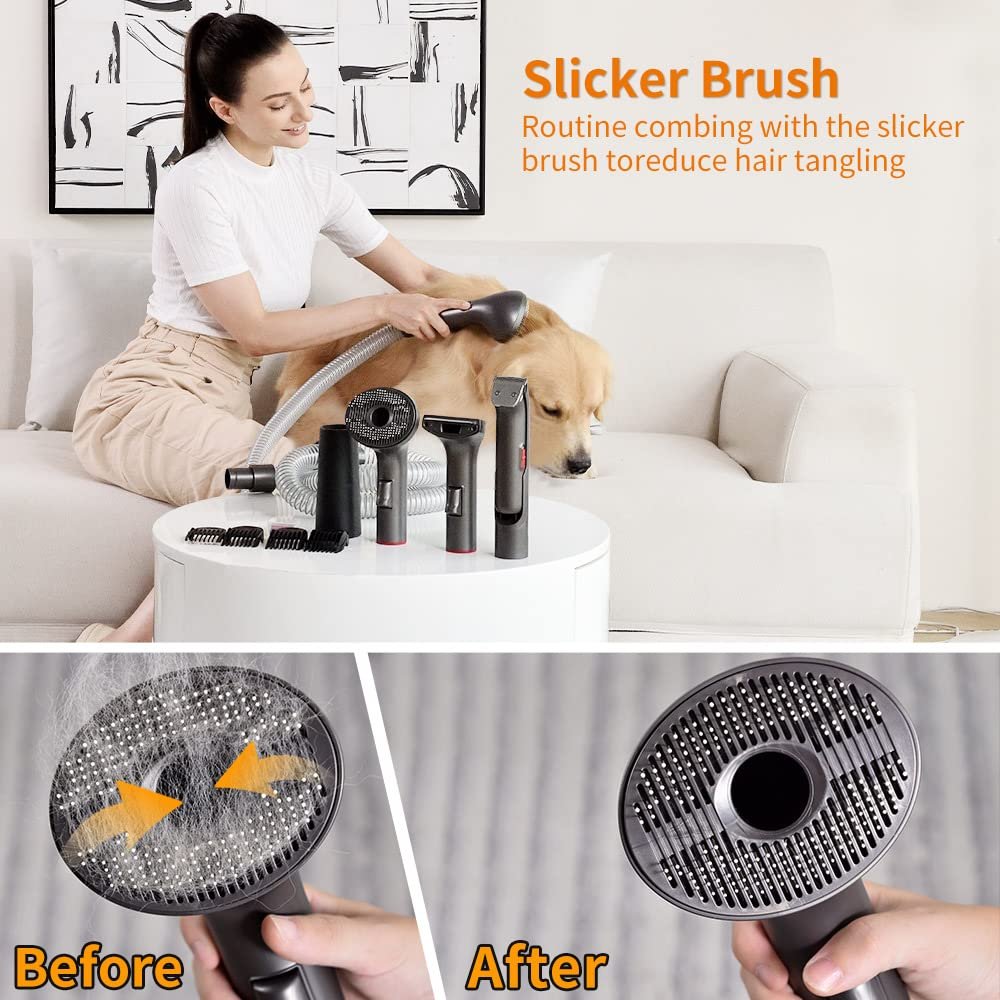 Dog Grooming Vacuum Attachment Kit, Pet Deshedding Brush for Shedding with Slicker, Electric Clippers, Crevice Nozzle for Cat Hair Remover