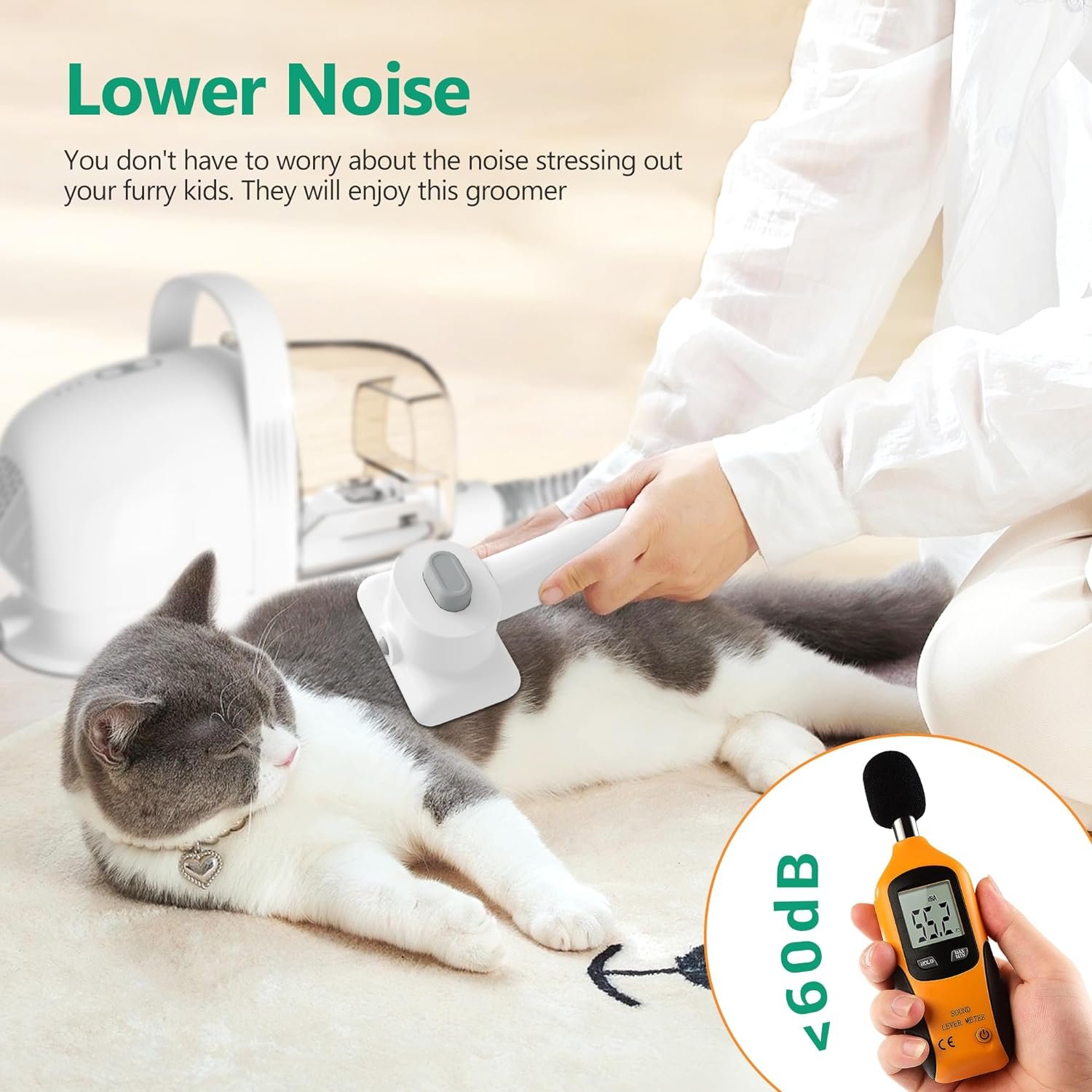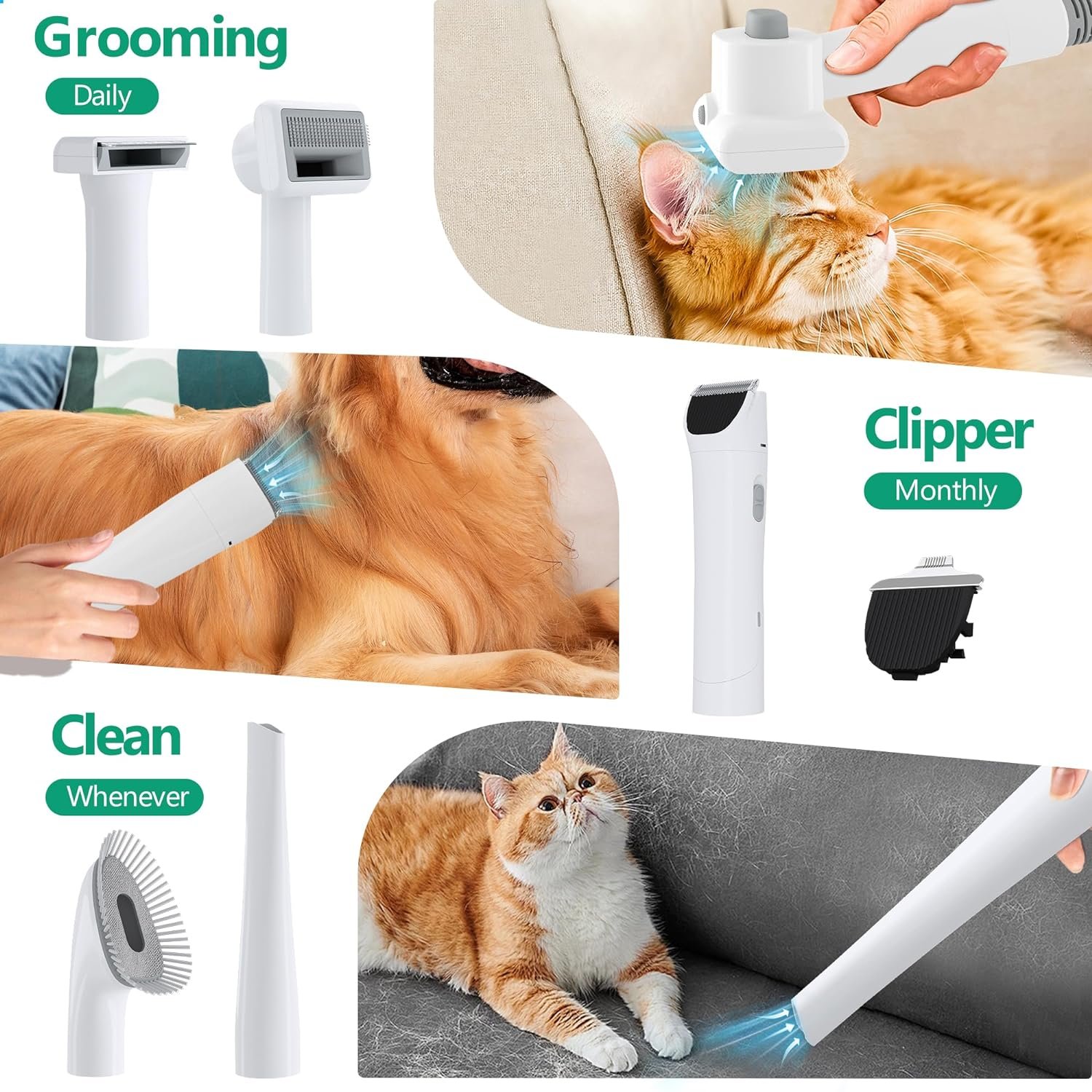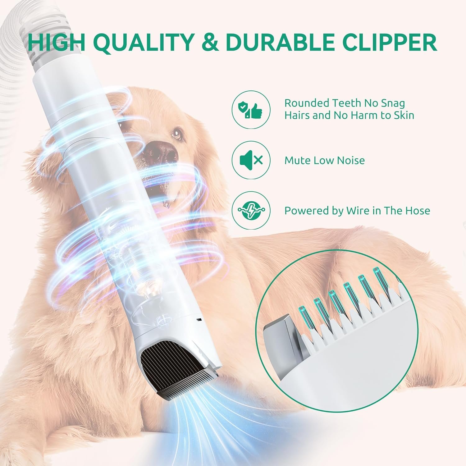 【💞🐱6 Magic Attachments, Endless Styles & Spotless Space】Gafilie dog vacuum for shedding grooming comes with 6 professional replacement heads. Whether you’re looking for a full-body overhaul or a detailed touch-up, two clipper blade heads can help you make it happen. The needle combs and thinning combs help you groom your pet for different looks while giving them a comfortable massage. The cleaning brush and suction nozzle leave no place for dog or cat hair in your home, instantly restoring a clean space.