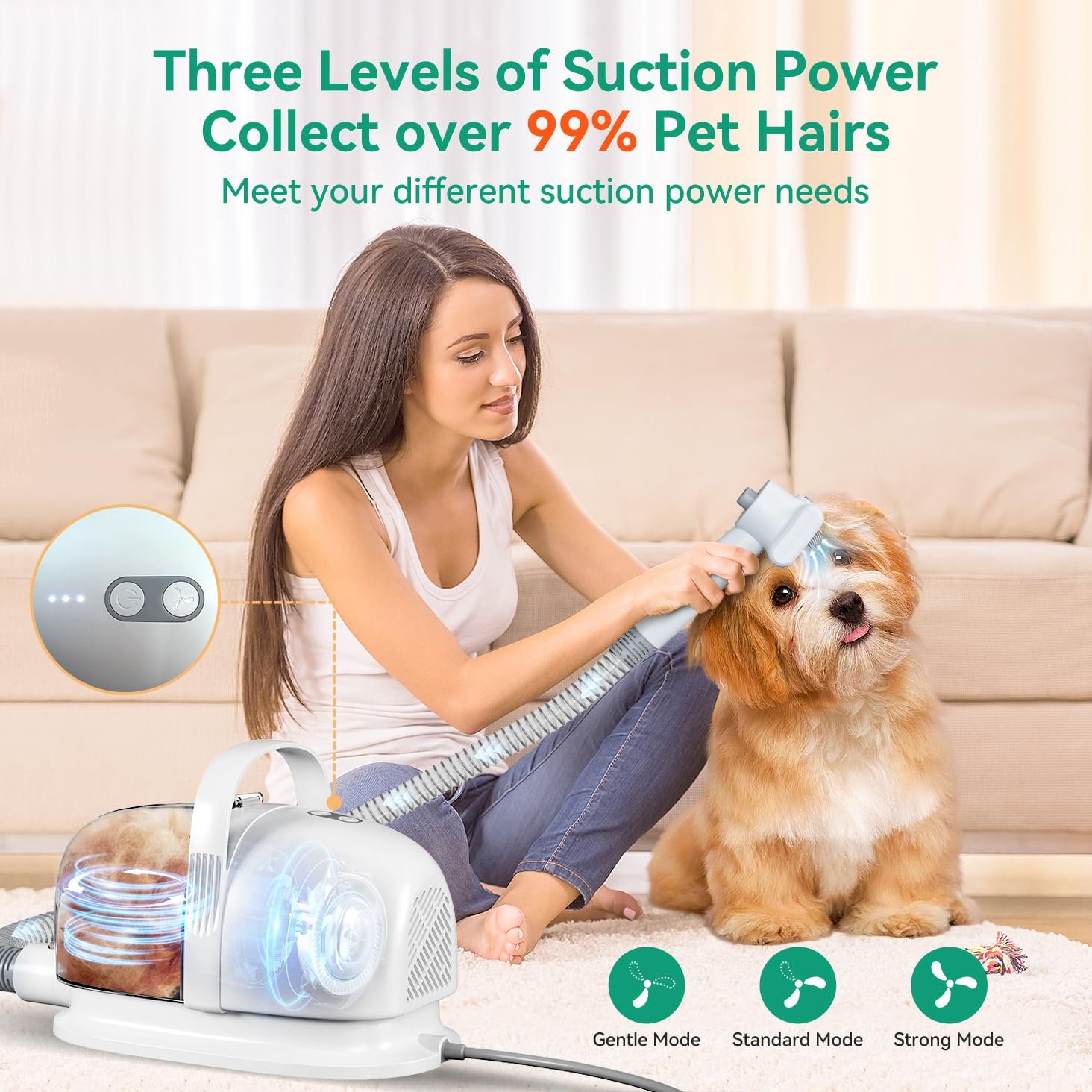 【💞🐶Powerful Suction, Quiet Operation】The dog hair vacuum has 3 gears and has a suction power of up to 12,000 Pa on the highest setting. It quickly captures trimmed hair while keeping noise below 60 dB. This creates a peaceful and enjoyable environment for all to interact with their pets.