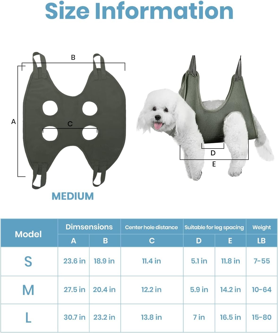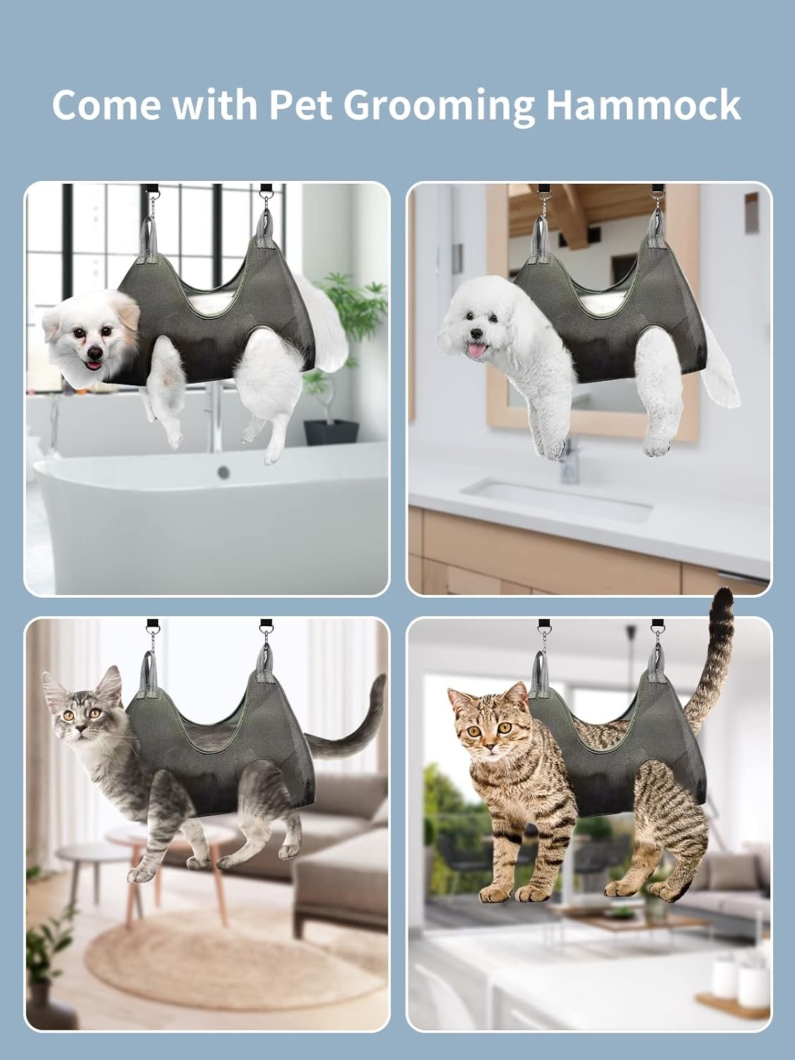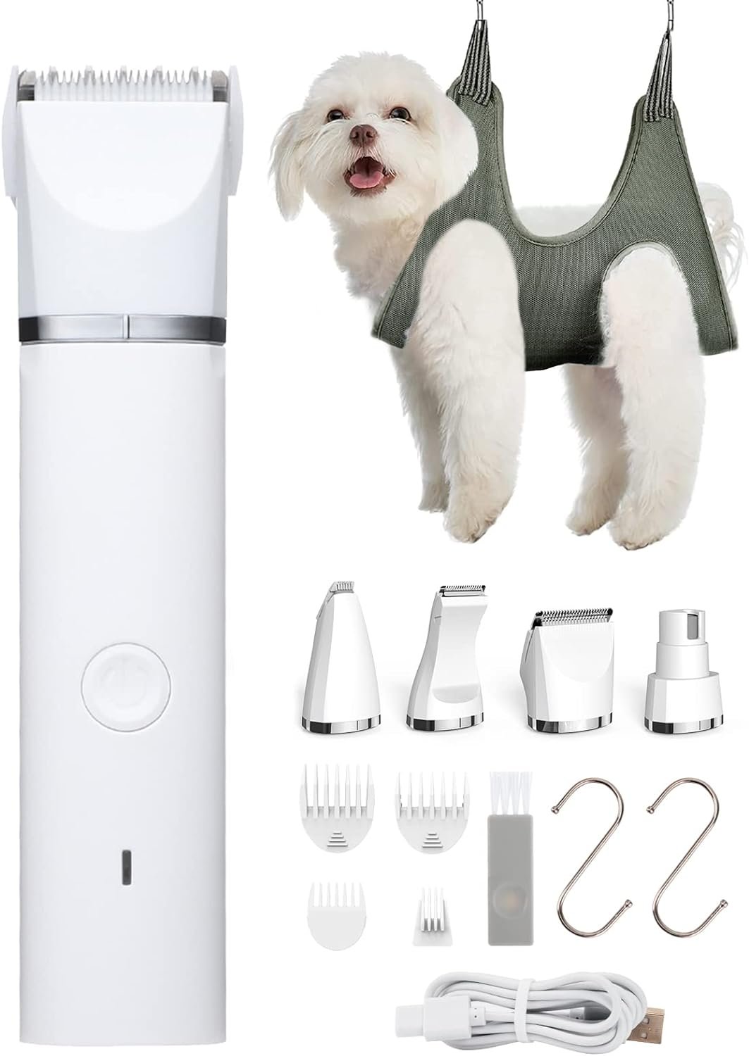 【Professional Pet Grooming Kit】WHDPETS dog hair clippers is equipped with 4 heads to meet different needs. 3 trimming blades are for dog hair around paws, eyes, ears, face, and rump. 1 nail grinder is for dog nail polished. It also comes with extra gifts: A pet grooming hammock. The dimsensions of medium size pet hammock is 20.4 in (L) x 27.5 (W). Suitable for medium cats and dogs within 64lbs.