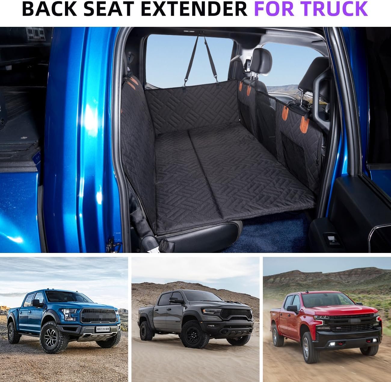 【Back seat extender for truck】Back seat of truck turns into large dog bed.Great for traveling with your dog in a truck.