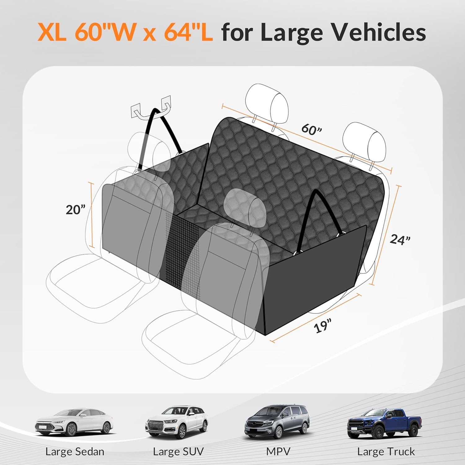 {Four-Layer Thickened Cushion} Homcolorful dog seat cover for back seat features a robust four-layer thickened base that guarantees long-lasting durability and exceptional waterproof, wear-resistant and dirt-resistant qualities.Whether you have a large dog or several furry companions, this mat can handle them all with ease.