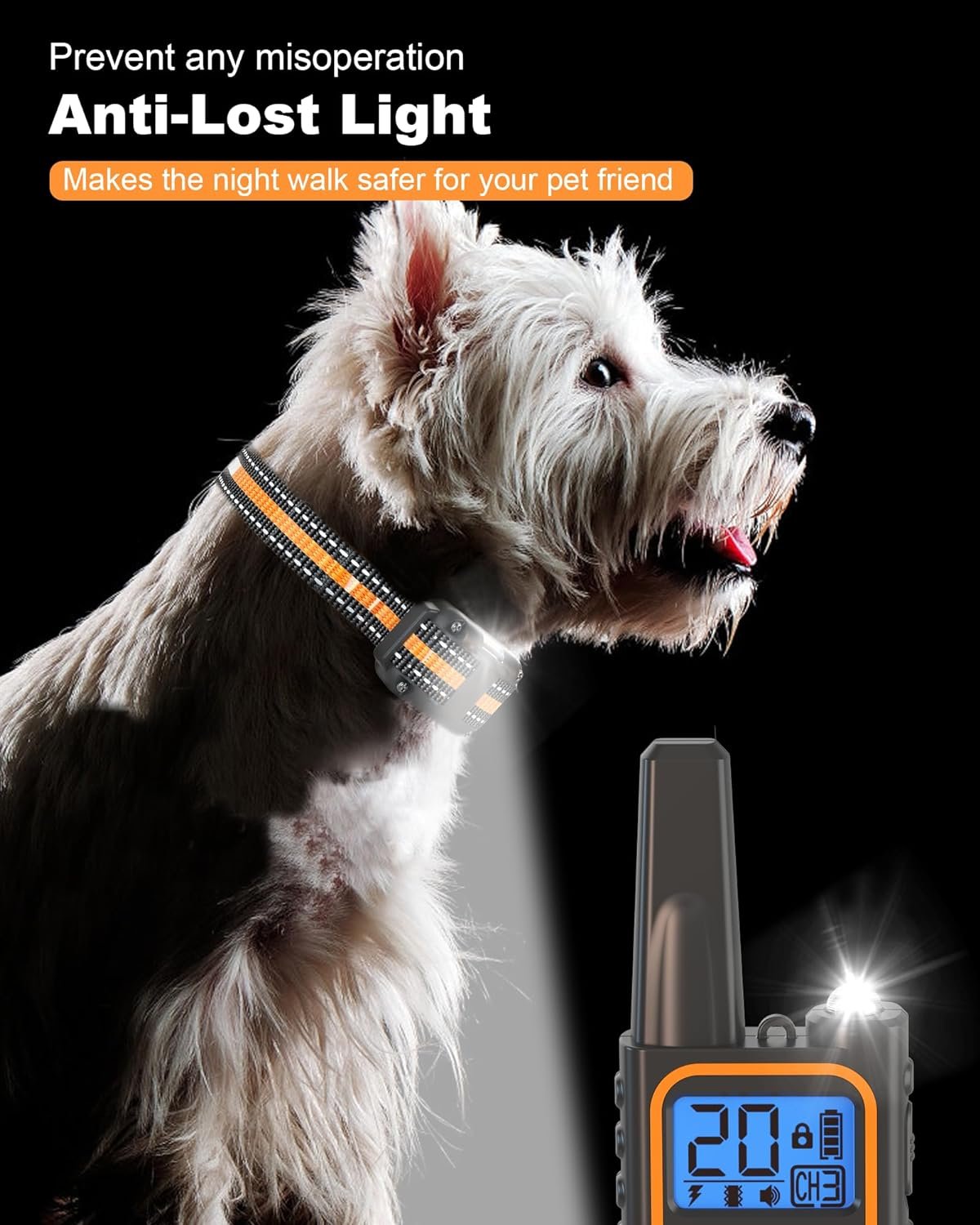 Safety Features And Anti-Lost Light: The shocking collar includes a safety lock to prevent accidental shocks and built-in lights on both the remote and receiver, enhancing nighttime visibility. shock collar for large dogs is essential for safely locating your dog in the dark and ensuring visibility during evening walks or searches post-dusk.