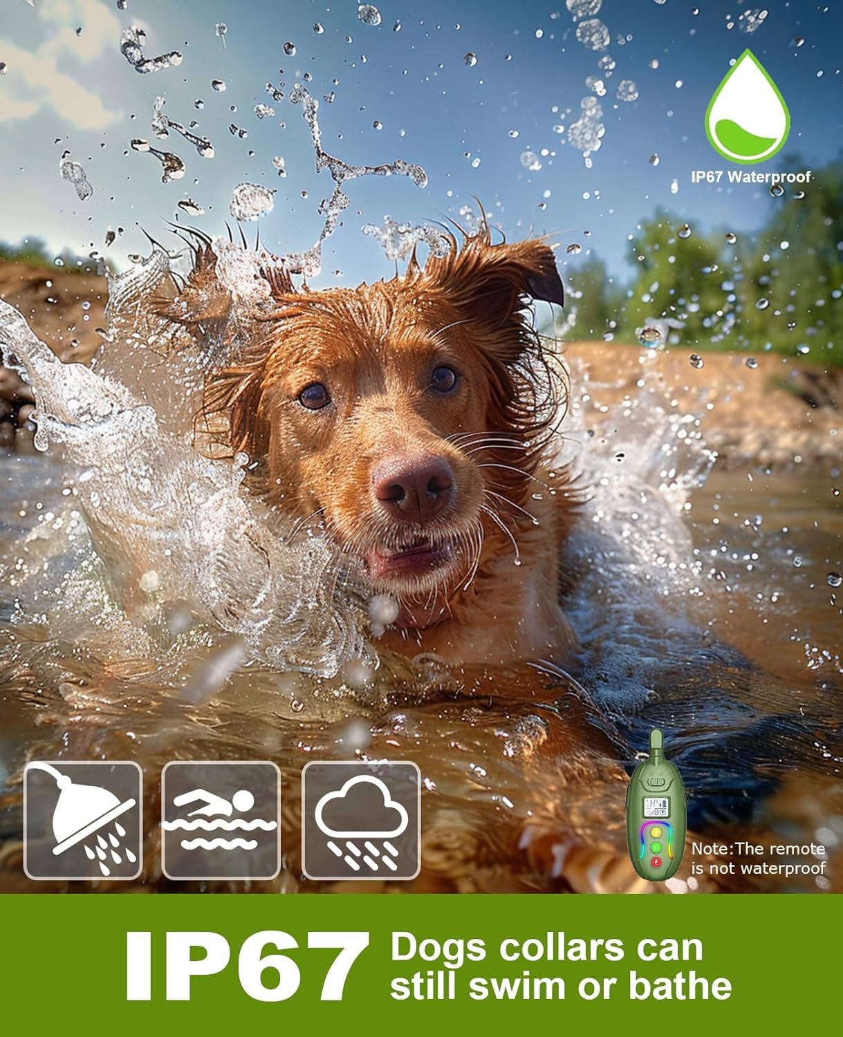 Crafted with an IP67 waterproof rating, animoul electric dog collar is built to withstand diverse weather conditions, perfect for indoor and outdoor activities alike. The receiver maintains consistent functionality, allowing your dog to swim, shower, or brave the rain or snow without worry. Enjoy worry-free bathing experiences, but please note that the remote control is not waterproof.