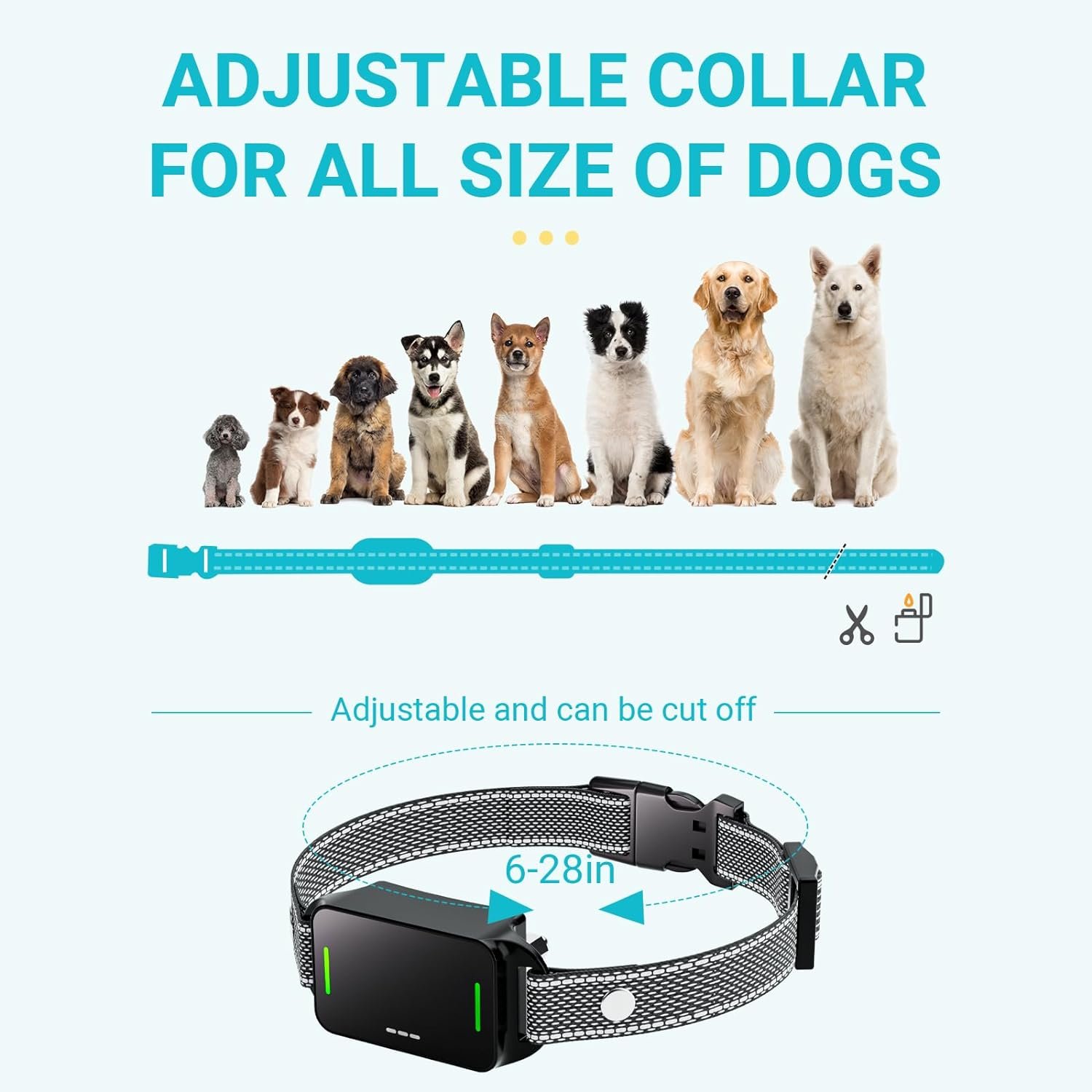 🐕Our collar is easily adjustable from 6-28 inches, fitting perfectly for all sizes of dogs, including small, medium, large, and other pets.