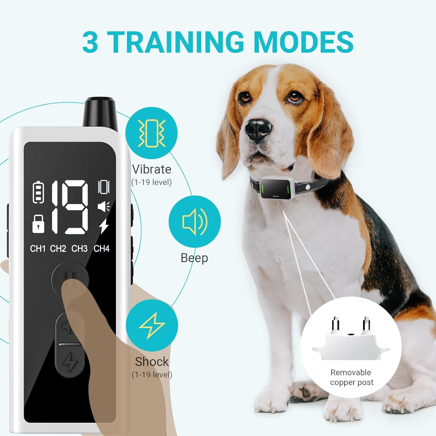 🐕Train like a pro with three adjustable modes: beep, vibration, and shock (1-19 levels). The accurate and comfortable static level can be set to your dog’s needs, and the collar includes an indicator light that can locate your dog in seconds.