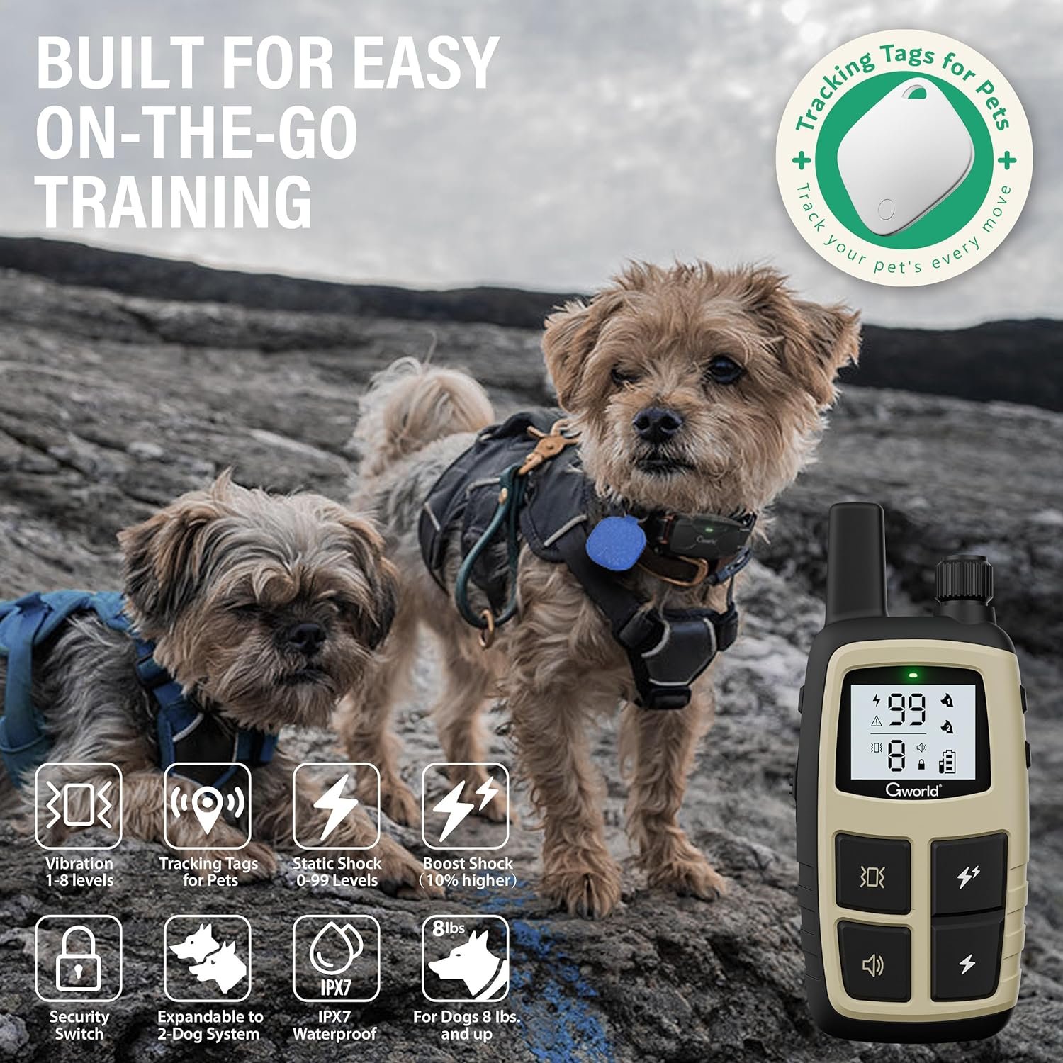 【4 Humanized, Effective, Safe Training Modes】Our dog shock collar features 4 humane training modes: beep(1-8 levels), vibration(1-8 levels), safe shock(1-99 levels) and Shock Boost(10% higher). Enables you to set the right stimulation levels for your pet, which helps deter dogs from undesirable habits.