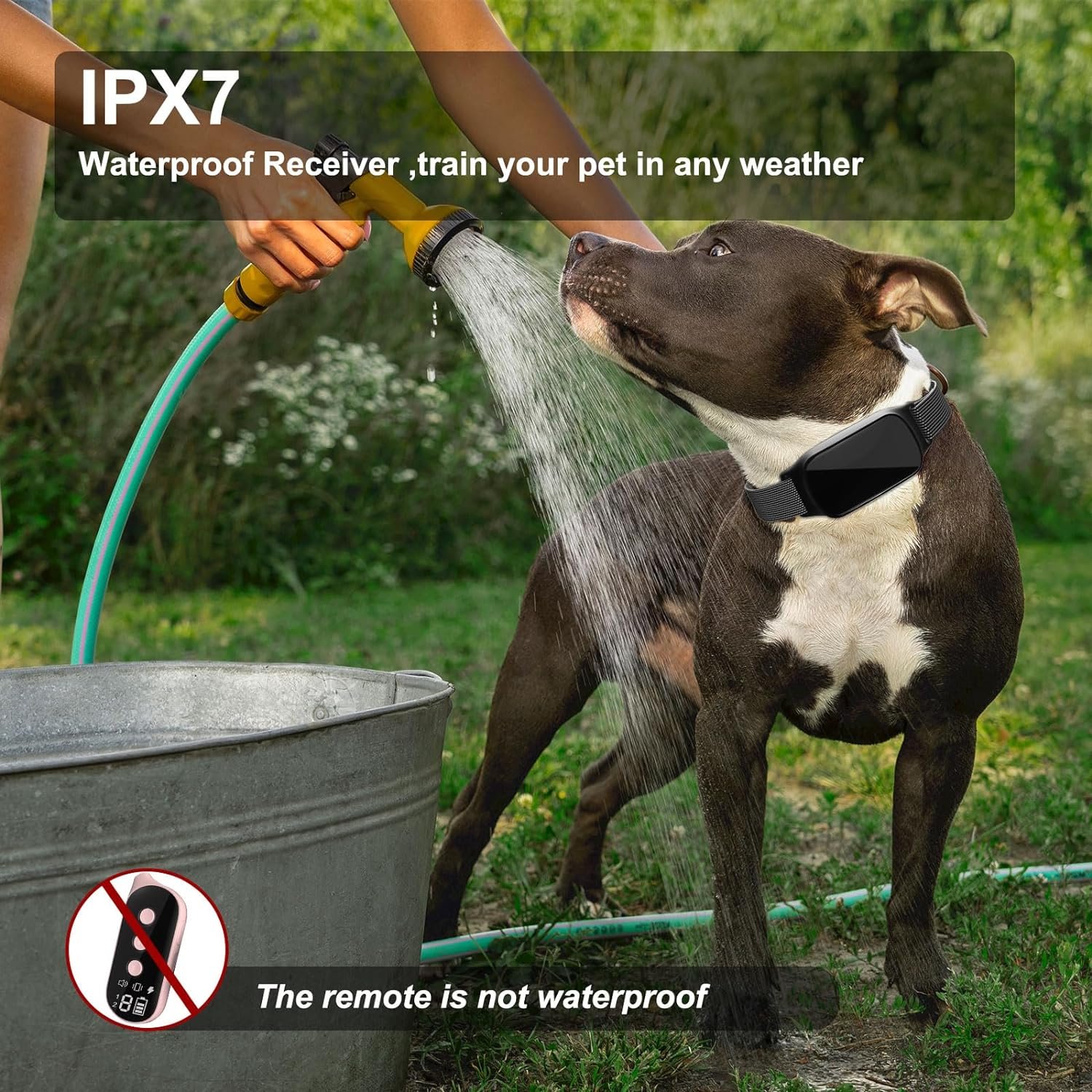 IPX7 Waterproof: This electronic shock collar is waterproof , with the waterproof receiver, your dog can enjoy a happy time underwater, even in the rainy day you can still train your dog