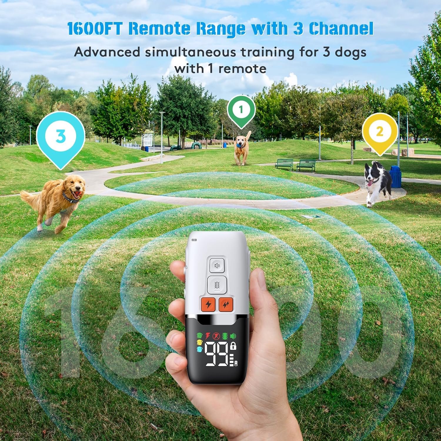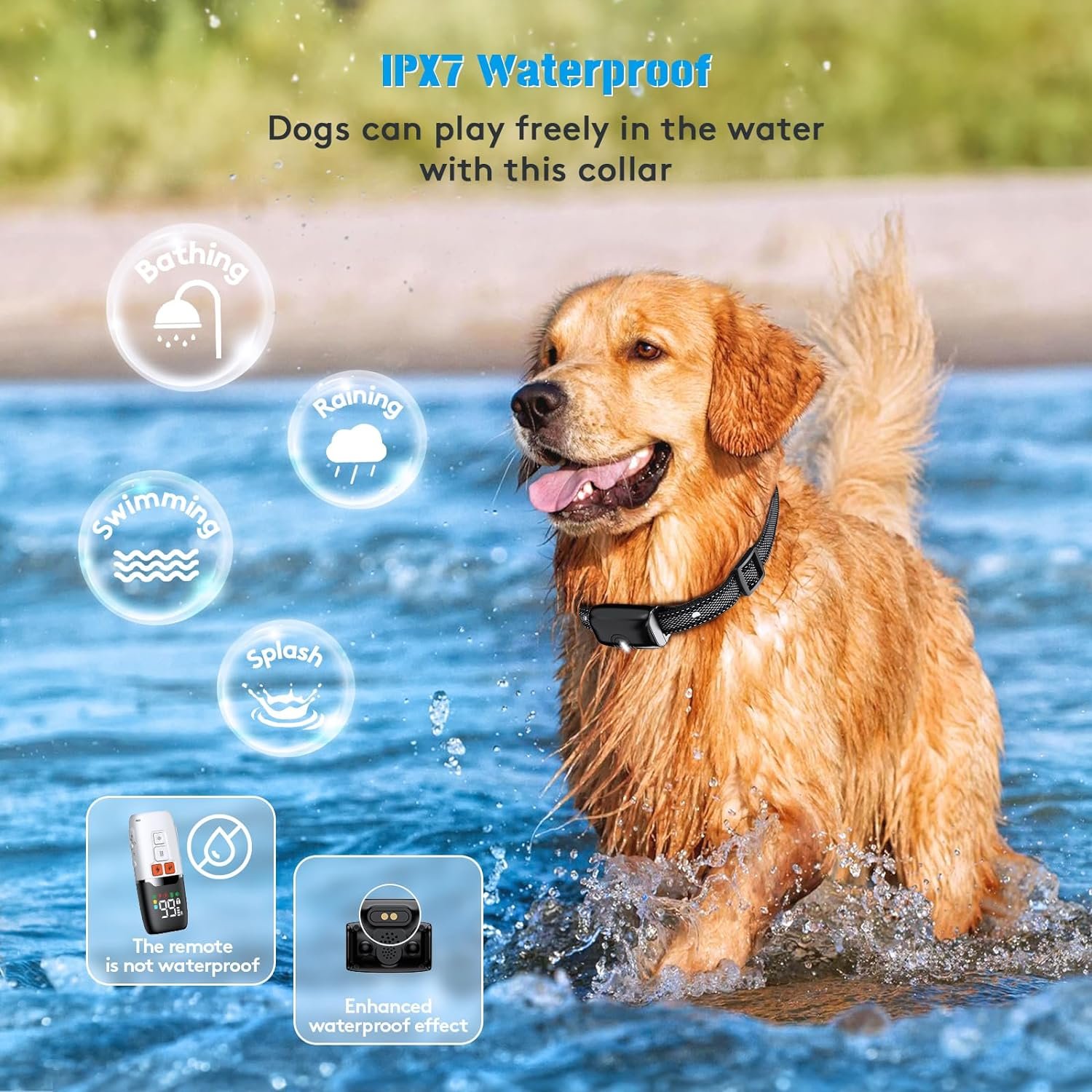 【IP67 Waterproof and 1600FT Remote Range】The dog collar receiver is IP67 waterproof, allowing your dogs wear enter the water. (Please make sure the receiver charging port is sealed before the dog enters the water.)The remote is IP65 waterproof, prevent rain splash but cannot be directly immersed in water.And with 1600FT Remote Range,You can rest assured to train your dog around your yard or when going out.