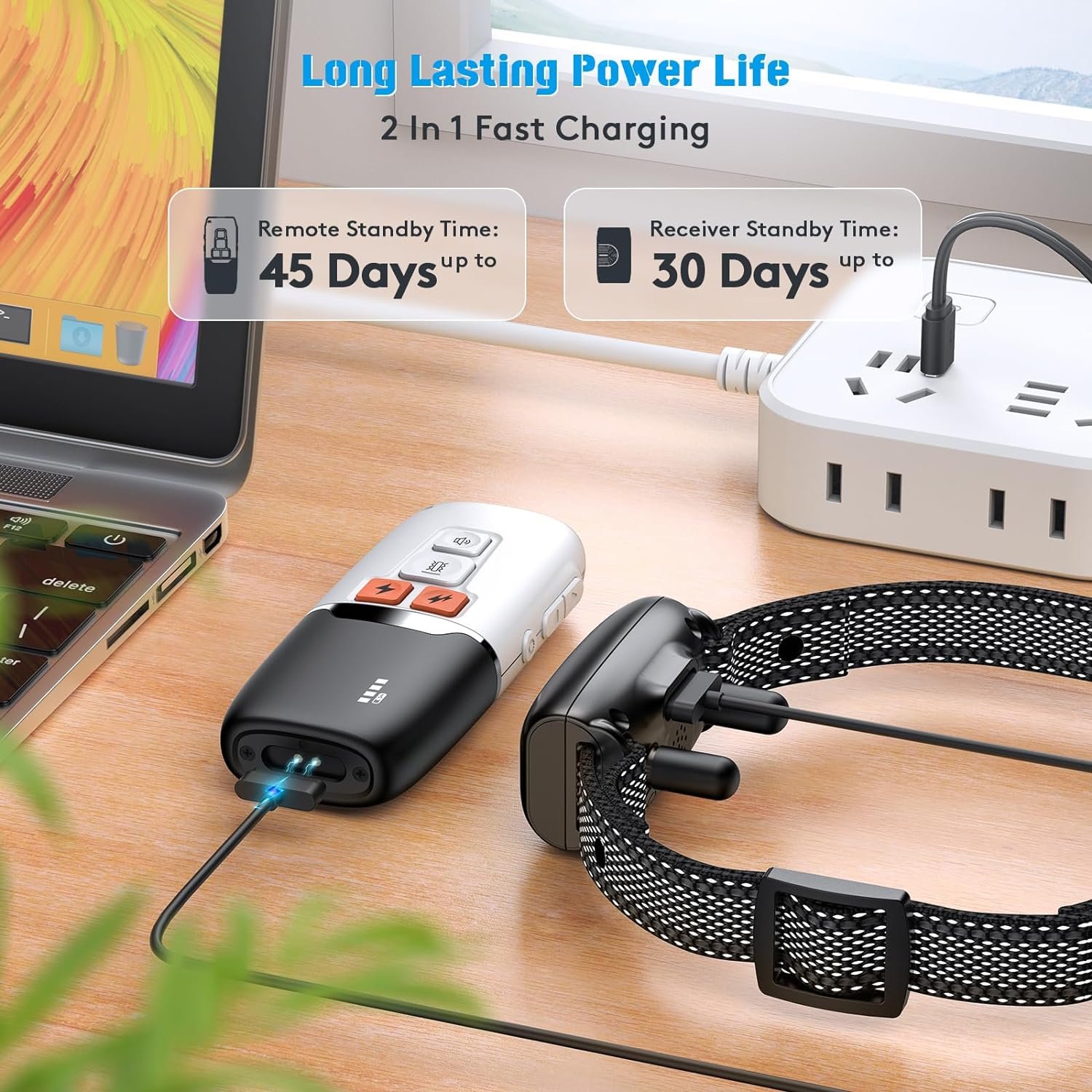 【Rechargeable and Long Battery Life】The shock collar comes with a Type-C charging cable. And both the receiver and remote are rechargeable, they can be easy to charge by a power adapter, power bank, or laptop.The receiver will last for 11-15 days after fully charged, and the remote will last for a month. Fully charged in 2-3 hours.