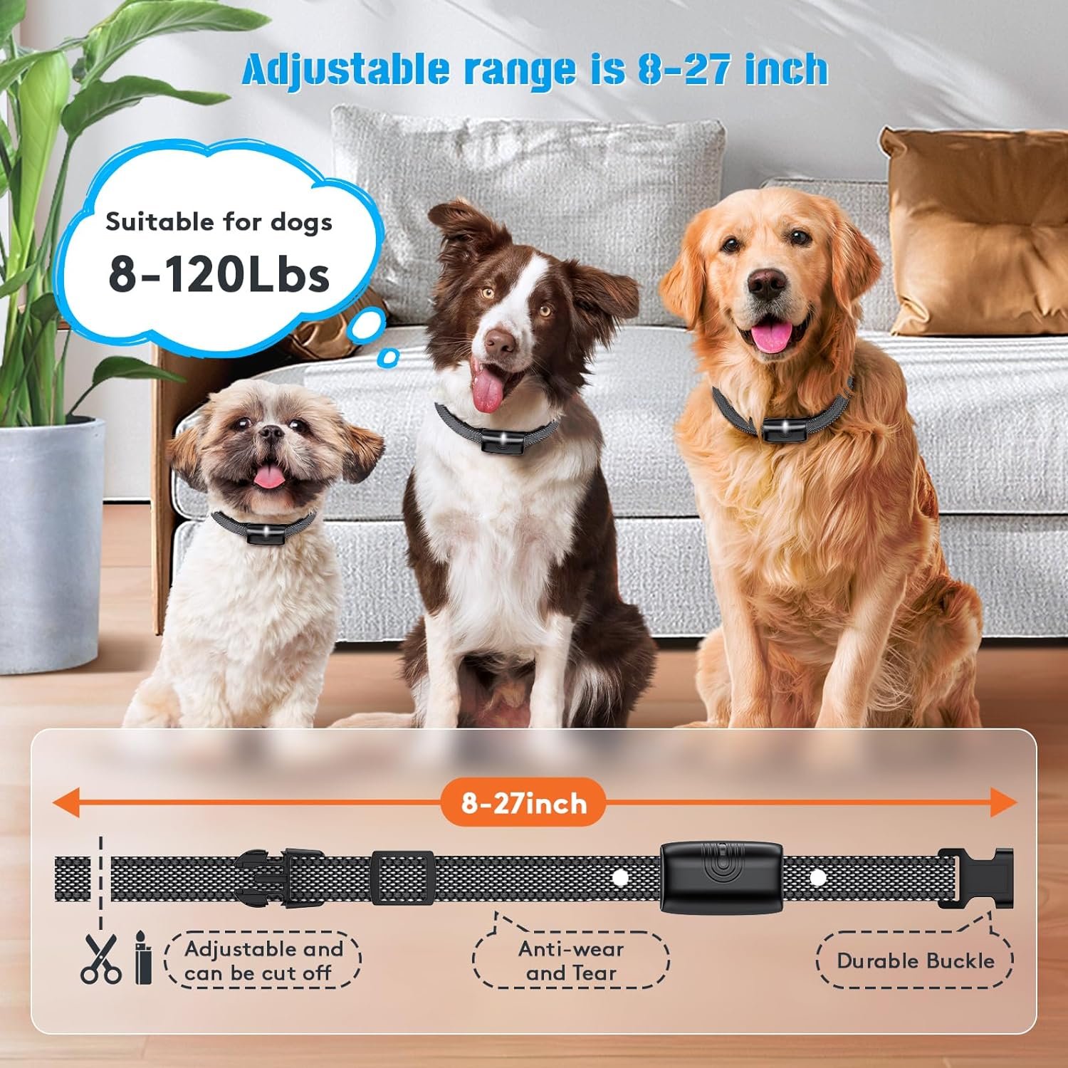 【Adjustable Collar Suitable for All Size Dogs】The leash is 29 inches long , and it can be cut off as needed,adjustable range is 8-27 inches, it is suitable for small, medium, and large dogs, and is from 8 to 140 lbs dogs.