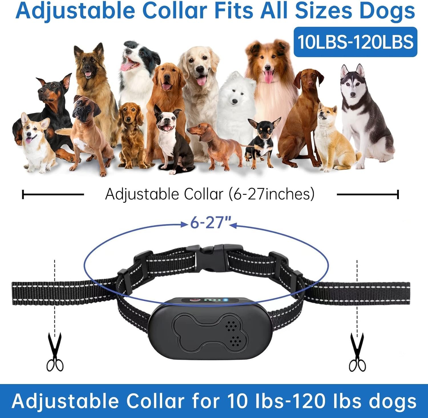 【IPX7 Waterproof & Comfortable Collar】The IPX7 waterproof collar allows your dog to swim, shower, and play in the rain. The adjustable nylon collar fits 6-27 inches. The training collar is very comfortable for small medium large dogs or other pets (10lbs -120lbs).
