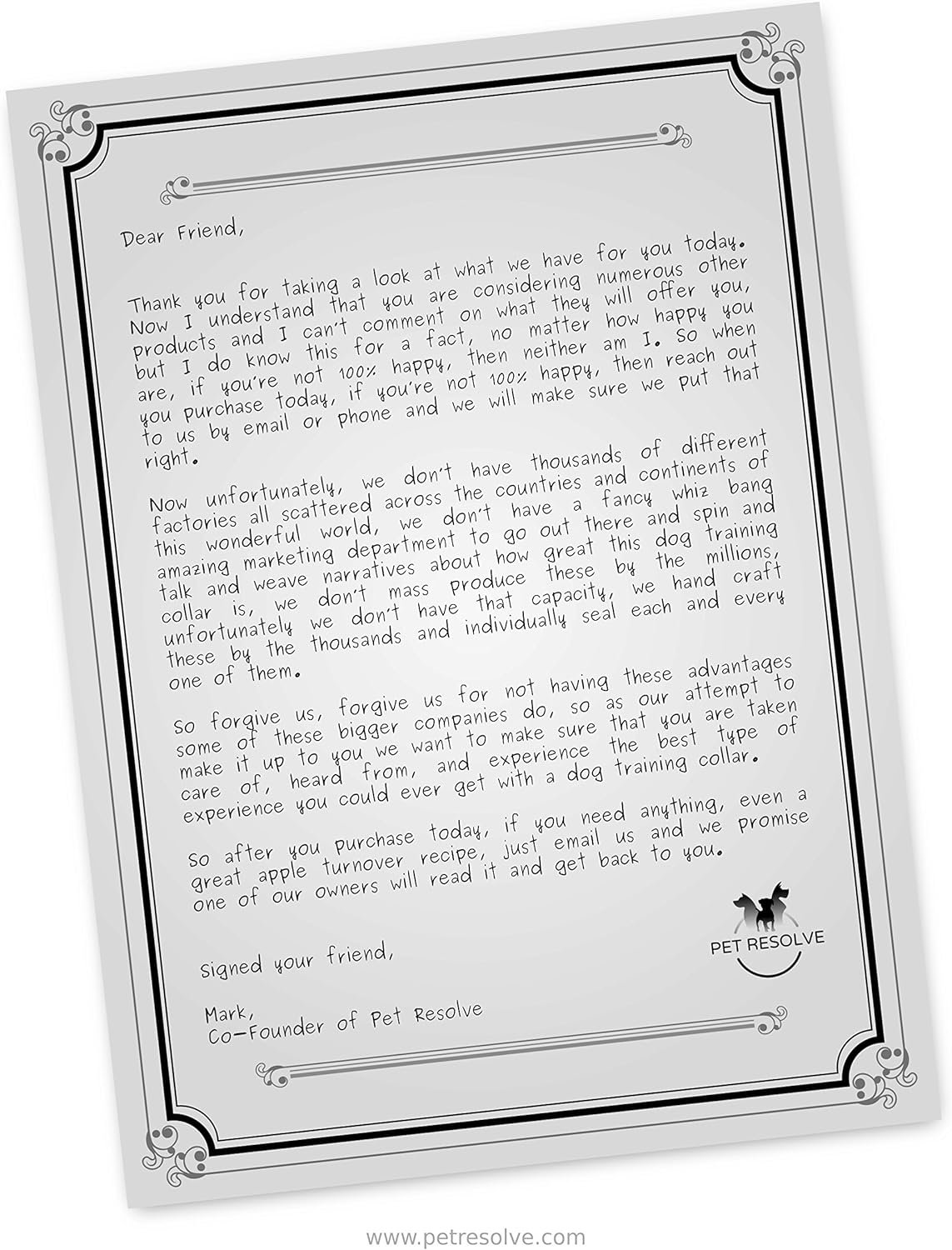 Welcome to Pet Resolve home to some of the top dog training products on the market. In the last 6 years, we have had great success in developing high-quality products that work, while backing them up with unbeatable customer support. In today’s world, it is rare that a company will keep to its promise and back up its products, this is exactly what we do at Pet Resolve. We put our success down to the quality we offer and the results we produce on a consistent basis. At Pet Resolve we pride ourselves on developing the highest quality products and offering them to customers at a fair rate just above cost. This is our philosophy, giving back to our customers by using the highest quality raw materials so that we can deliver products we trust and our customers can trust too.