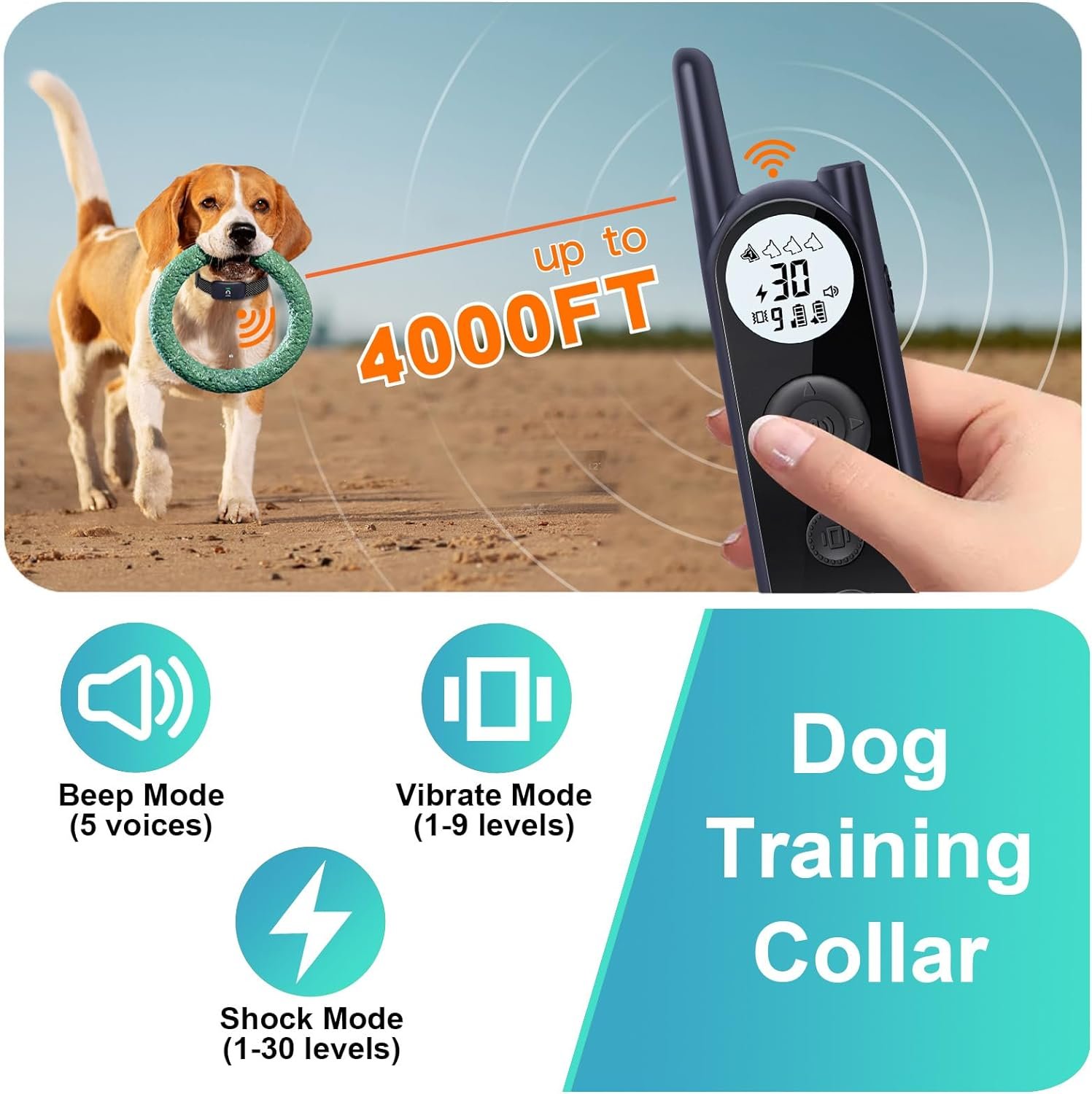 4000Ft Remote & 4 Channels – The dog shockers for medium dogs have 4 channels to choose from. Up to 4000Ft control range allows you to train your dog more extensively in backyards, parks, beaches, woods, and open fields.