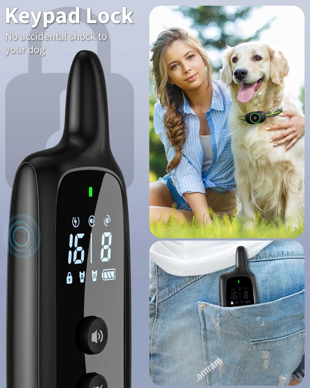 【Easy & Safe to Handle】The clear digital screen and large buttons with three different icons allow you to become proficient in operation in minutes. At the same time, the safety lock setting of the remote control helps prevent misuse and avoid unnecessary electric shock to your dog.