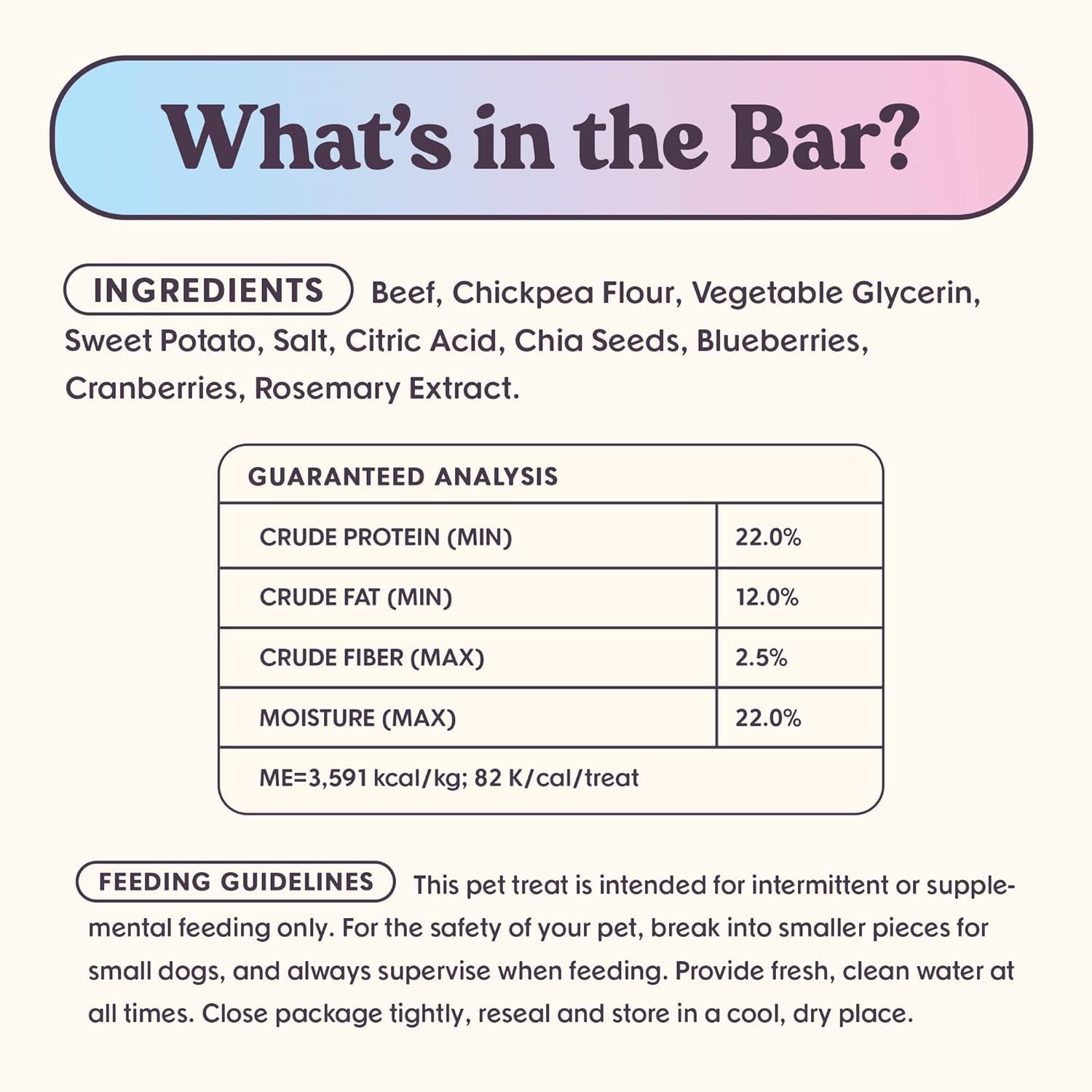 NATURAL INGREDIENTS: These meaty training treats are perfect for dogs of all sizes and breeds, and contain plant-based superfoods like sweet potatoes, chia seeds, blueberries, and cranberries.