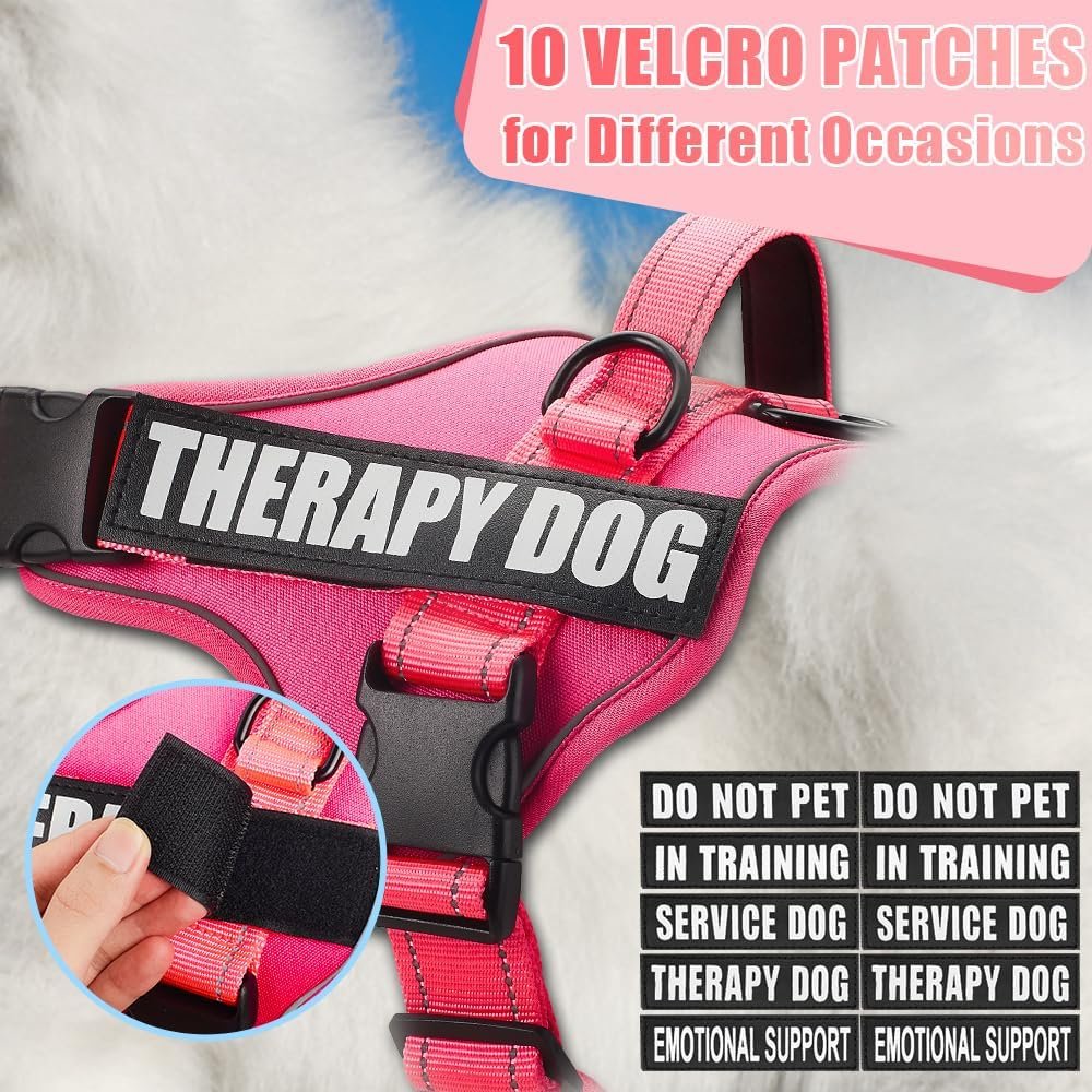【What Will You Get】Equip your furry companion for the job with a dog vest harness, a 5-feet leash, and 10 removable velcro patches includes 2 x “DO NOT PET,” 2 x “IN TRAINING,” 2 x “THERAPY DOG,” 2 x “SERVICE DOG,”and 2 x “EMOTIONAL SUPPORT.” Showcase your dog’s unique personality or display important information with the ability to attach 2 patches to your dog harness.