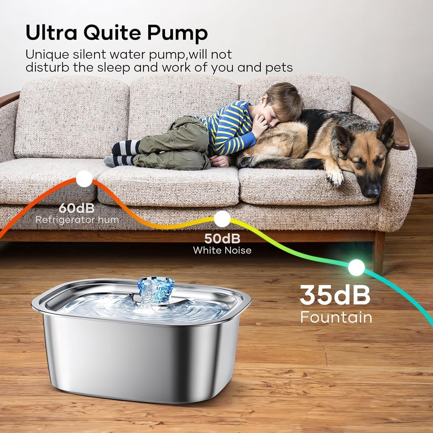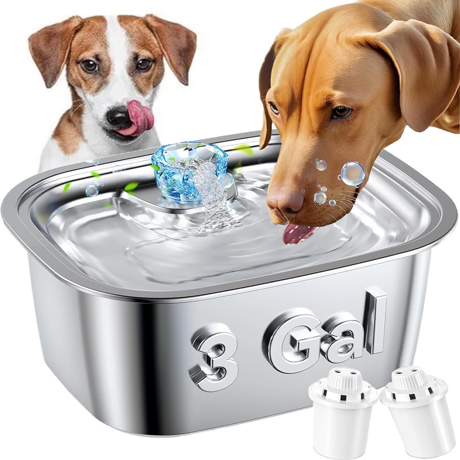 Extra Large Dog Water Fountain: PETNF stainless steel dog water fountain boasts an impressive 11-liter (3-gallon) capacity, which is designed with large breeds and multiple dog families in mind. With this pet fountain, you will no longer have to worry about frequent refills of water.