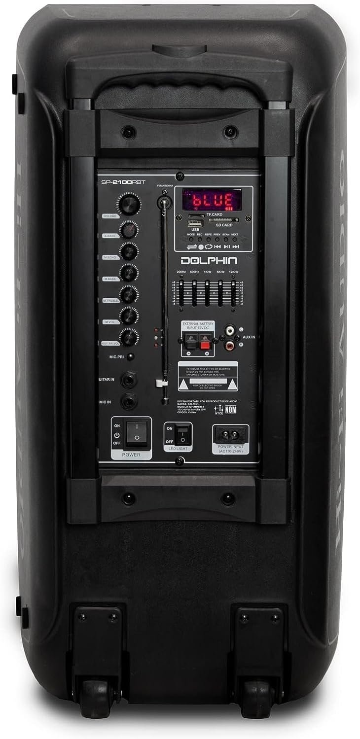 Be the first to review “Dolphin SP-2100RBT Portable Bluetooth Speaker System – Party Speaker on Wheels with Sound-Activated Light Show, Seamless Audio Sync, Powerful Bass, Dual 10″ Woofers, Long Battery Life”