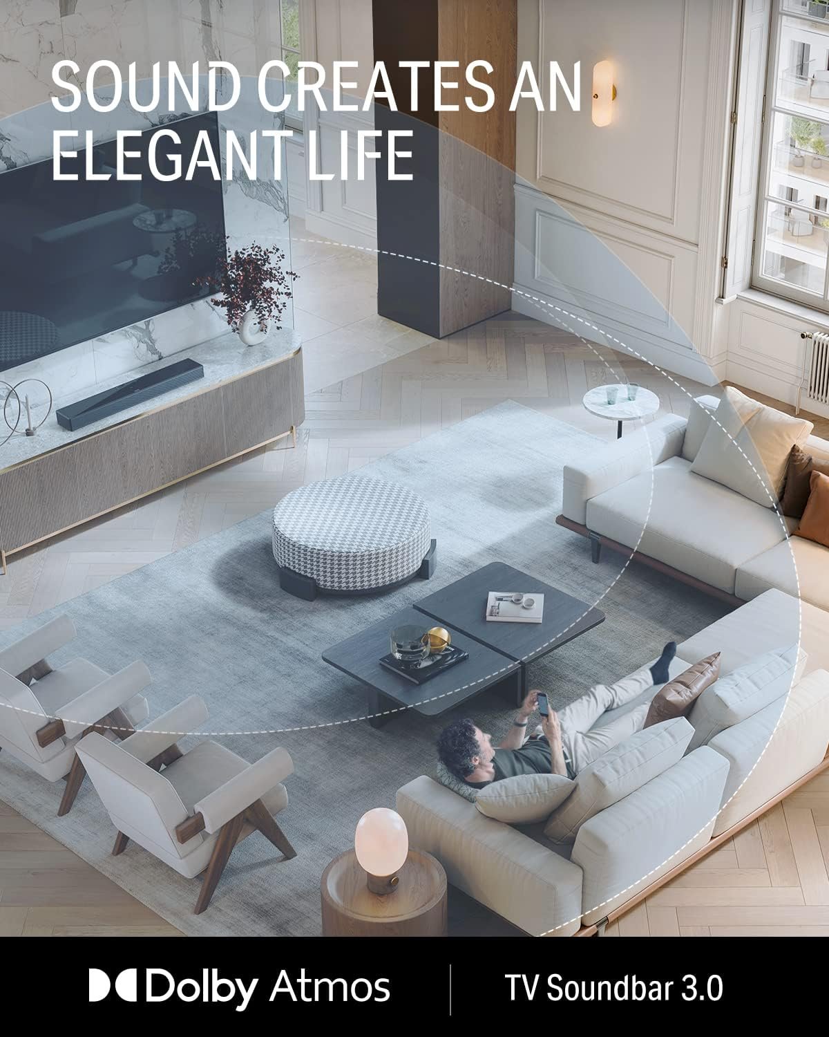 👂SOUND MATTERS – As the FIRST soundbar from Donner, DHT-S300 adopted the advanced Dolby Atmos audio algorithm technology, and significantly enhanced the stereo sense of sound, providing a more extraordinary sound experience than other soundbars in the same price range.