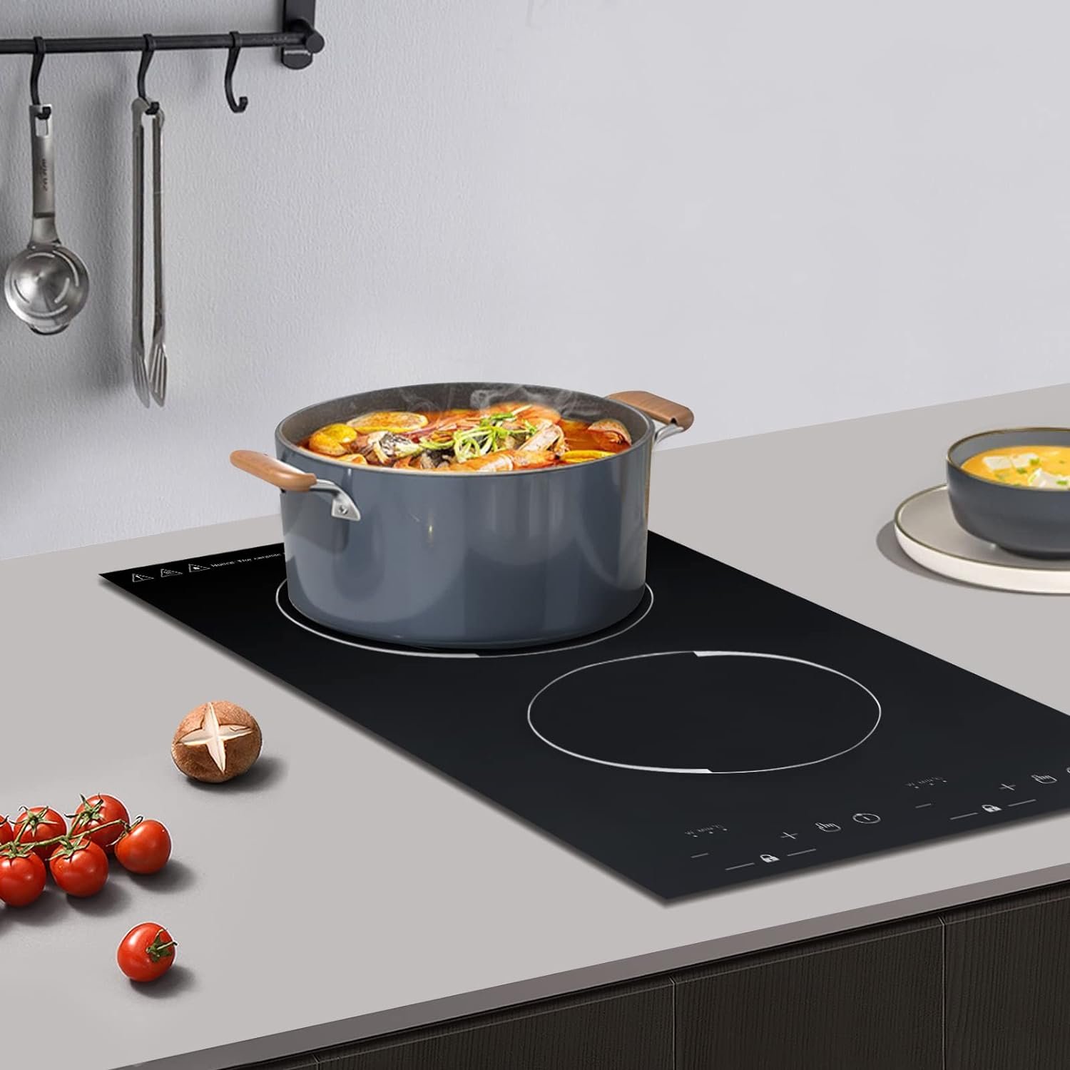 【Double Head Design】The vertical design of this 2 burner induction cooktop portable makes the whole kitchen countertop look more spacious and won’t make cooking crowded. You can use both burners at the same time to improve cooking efficiency. The large burner is suitable for sautéing and frying, while the small burner is suitable for slow cooking and stewing. Shorten the time it takes to prepare your dishes, so you can spend more time with your family.