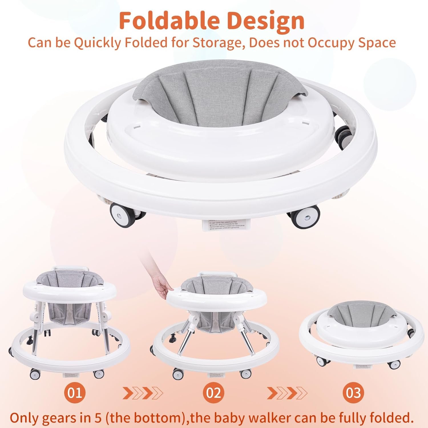 🔔【Easy Folding and Unfolding】The baby walkers for baby boys and baby girls can be easily folded and unfolded without any other tools, and can be conveniently stored and carried out after folding.