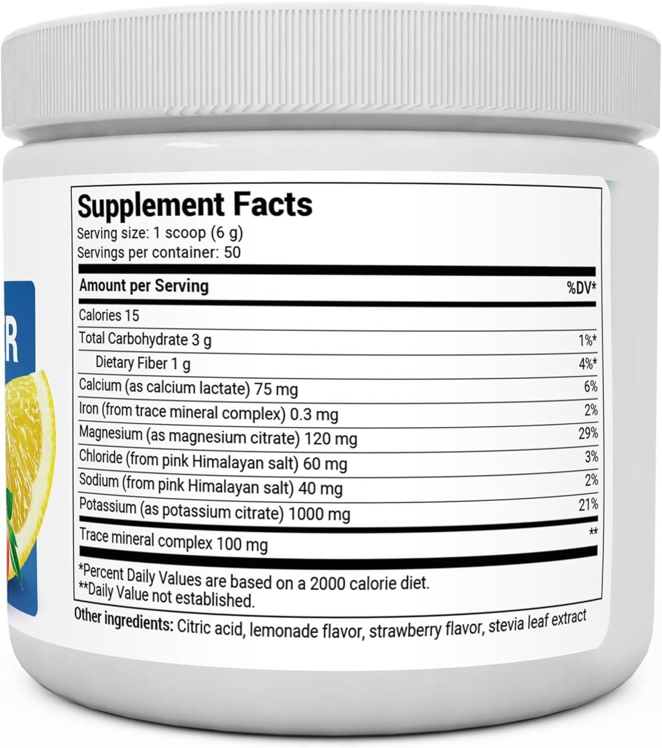 𝗘𝗟𝗘𝗖𝗧𝗥𝗢𝗟𝗬𝗧𝗘𝗦 𝗣𝗢𝗪𝗗𝗘𝗥 𝗡𝗢 𝗦𝗨𝗚𝗔𝗥 – Each serving is loaded with 1,000 mg of potassium as opposed to only 250 mg other brands offer. Additionally, this electrolytes powder offers a very unique blend of Calcium, Magnesium, Chloride (from Pink Himalayan Salt – NOT table salt other brands offer) and an amazing Trace Mineral Complex. This refreshing and delicious Strawberry Lemonade flavor includes 50 servings.