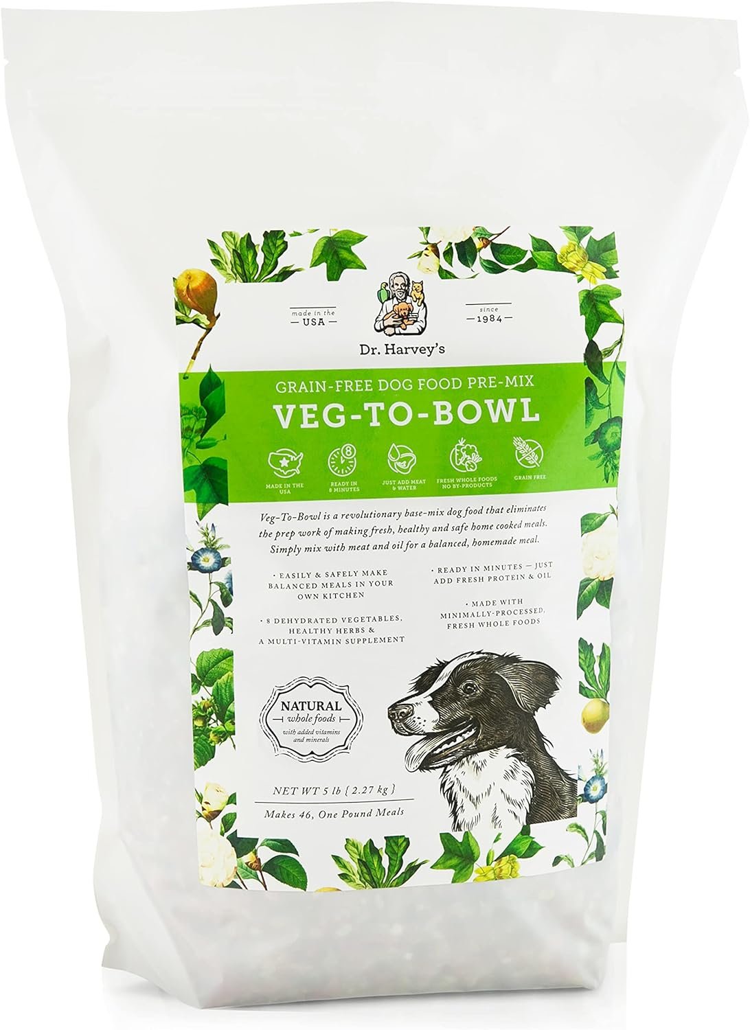 5 pound bag makes 46, one pound finished meals; High in Calcium and other minerals; Grain-Free, Non-GMO Certified & Made in the USA; Holistic Formula with NO Synthetic Ingredients, NO Chemicals, NO Preservatives, No Dyes
