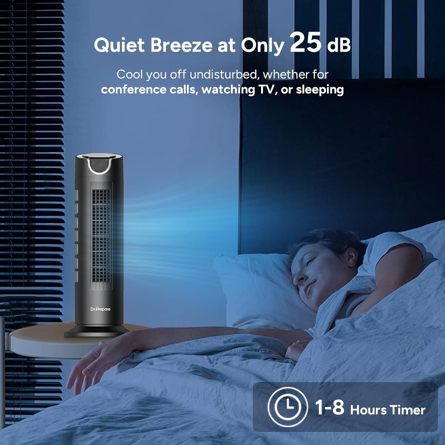 [5” Larger Blades for Wider Airflow & More Comfortable Wind] Farewell to hard wind discomfort of other traditional fans! With upgraded 5-inch larger fan blades and a high-performance motor, Dr.Prepare small tower fan generates more gentle and wider airflow, giving you the feel of a refreshing natural wind. Offering 3 variable speeds, this oscillating fan matches your multiple needs.