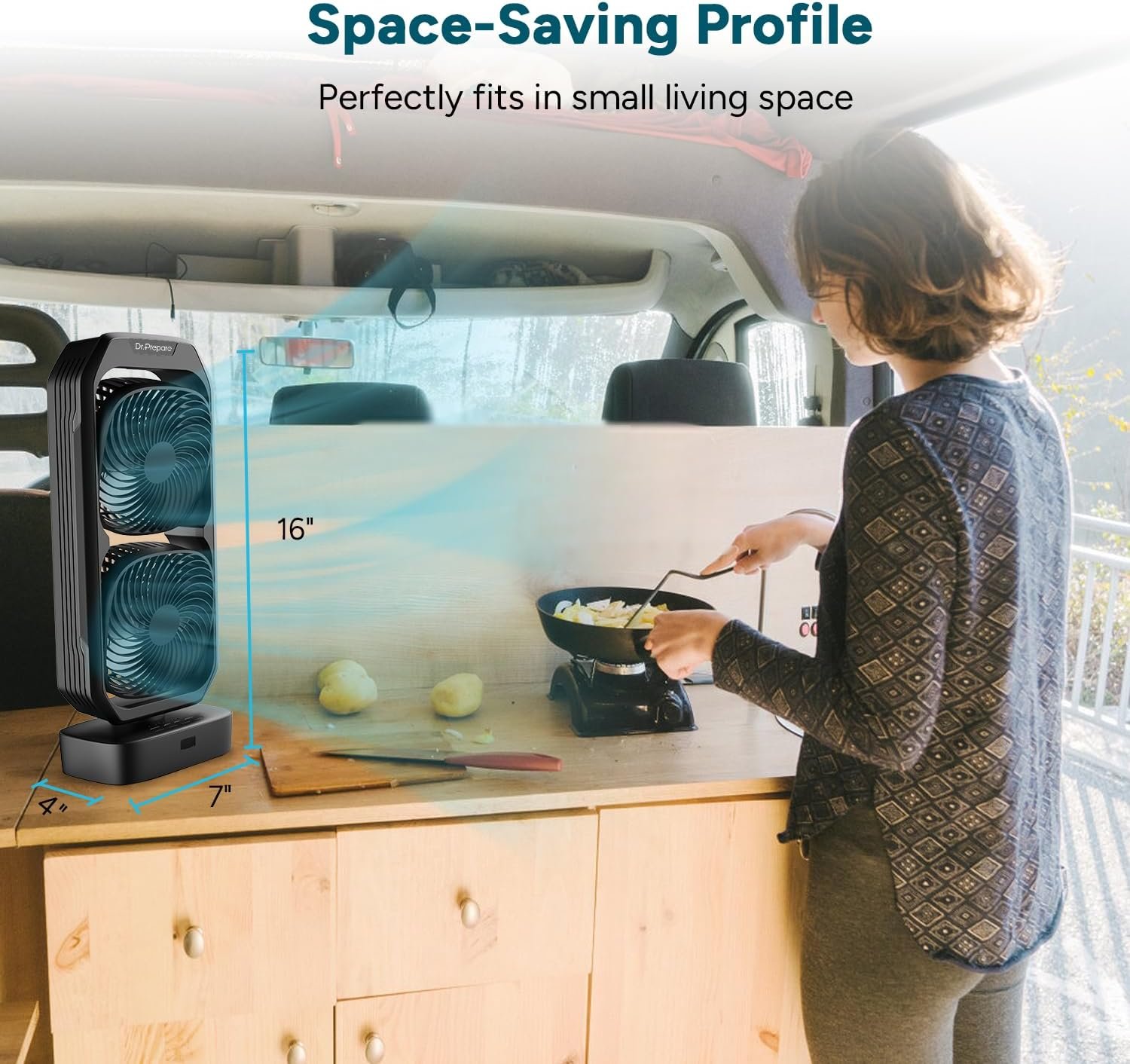 [Dual Oscillating and tilting Tower Fans] Dr.prepare portable dual fan boasts pivoting and oscillation design. You can tilt each fan for up to 250° to point precisely where cooling is needed. The 120° horizontal wide-range oscillation can accelerate the air circulation to say goodbye to stuffy summer days.