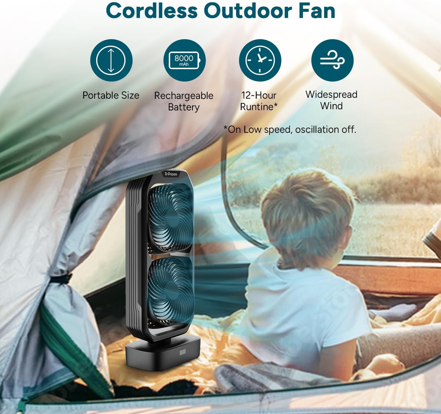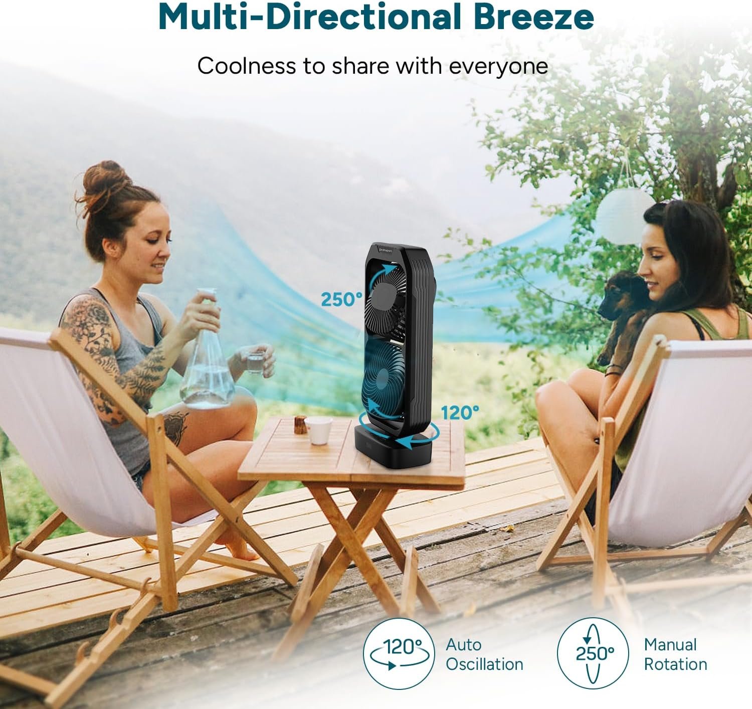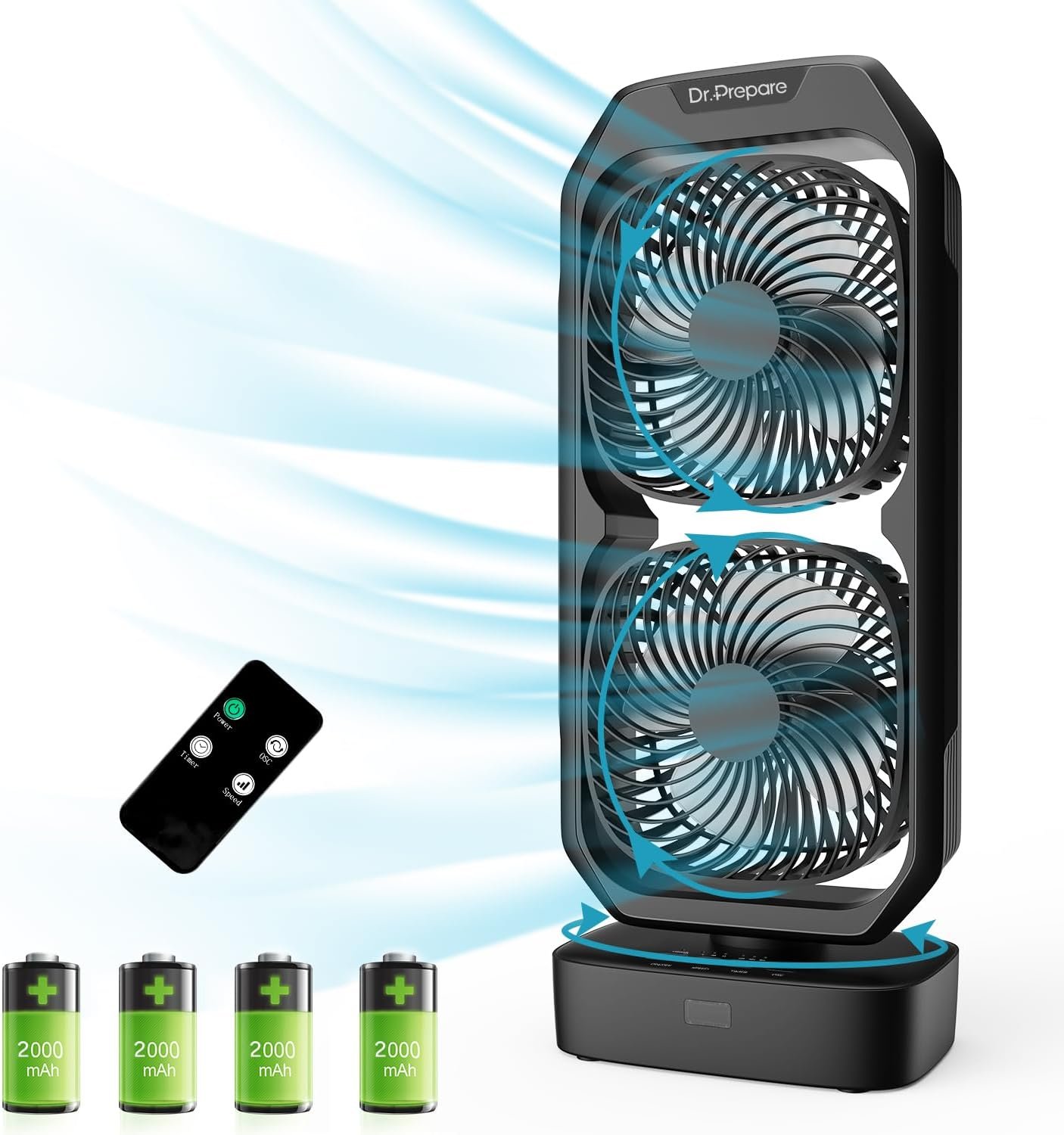 [Dual Oscillating and Tilting Tower Fans] Dr.prepare portable dual fan boasts pivoting and oscillation design. You can tilt each fan for up to 250° to point precisely where cooling is needed. The 120° horizontal wide-range oscillation can accelerate the air circulation to say goodbye to stuffy summer days.