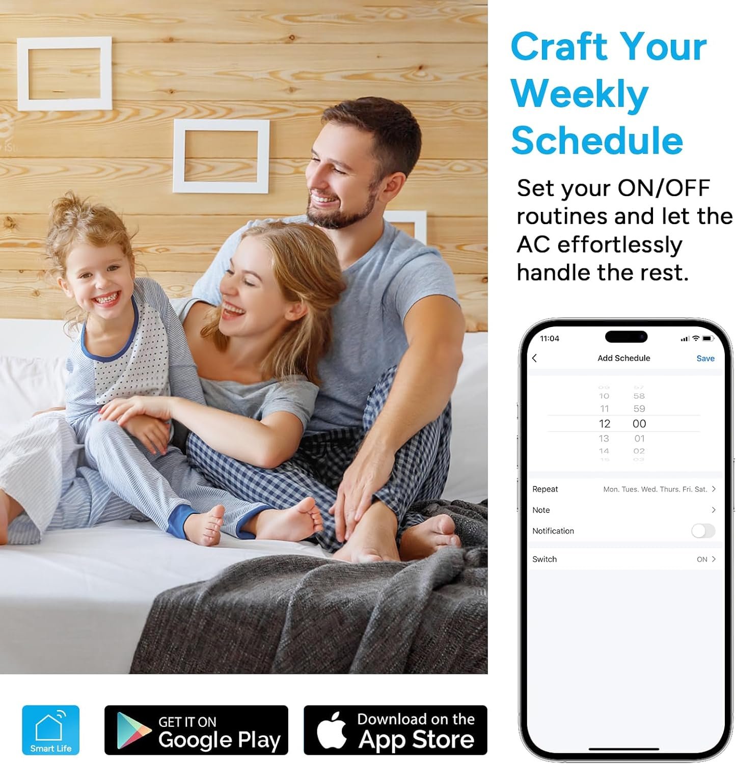 [Intelligent Timer Settings] With smart scheduling in the app, you can control your AC from anywhere. Set your ON/OFF routines and let the AC handle the rest. Alternatively, you can easily configure 1-24 hour timers via the intuitive touch panel or remote control (AAA batteries not included).