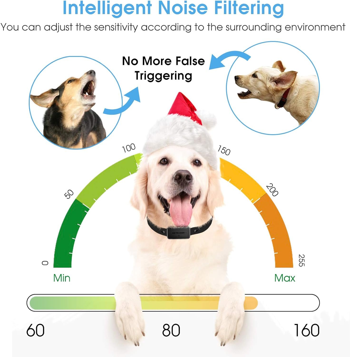 【No More False Triggering & Adjustable For S/M/ L dogs】The no bark collar is equipped with a smart triggering sensor, it will detect and filter out other noises, such as other dog’s barking. You can adjust the sensitivity setting(60-160levels) based on different situations to avoid sending unintended commands to your dog. Adjustable for dogs weighing 6 to 150 lbs with neck size of 7 to 22 inches