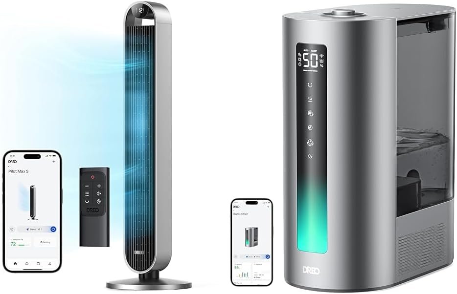 Product 1: Cooling Gets Smarter: With the Dreo app, you can control your smart tower fan from anywhere. Adjust settings while you’re in another room, at the office, or out walking the dog. Plus, Pilot Max is compatible with Amazon Alexa and Google Assistant, so you can use your fan without lifting a finger