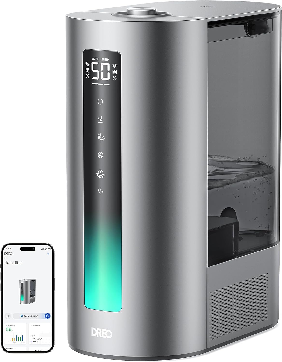 Dreo 6L Smart Humidifier, Warm & Cool Mist Humidifier for Bedroom, Top Fill, 60Hr Runtime, High Precision Humidity Sensor and Indicator Light, Large Room, Nursery, Plant, Works with Alexa, HM713S