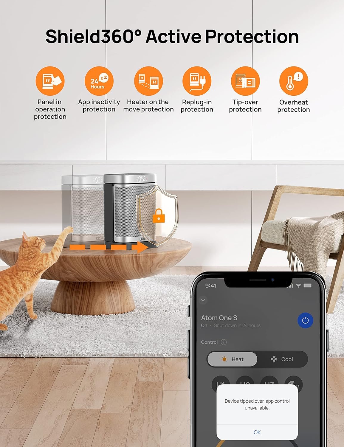 Product 1: Safest on the Market: ETL-Certified smart heater to pass safety tests with its premium built-in features. ETL-listed Shield360° system provides tip-over and overheat protection, as well as an enhanced safety plug. Along with UL94 V-0 flame-retardant materials to ensure ultimate safety in all aspects. Heat up your day and night without worries