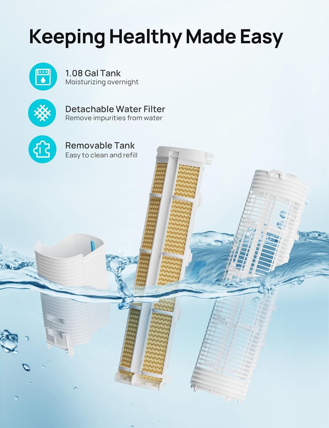 Easy Maintenance, Easy Health: Removable water tank, cooling pad, and rear grille make regular cleaning and maintenance a breeze. Enjoy fresh and cool air at all times only from this portable evaporative cooler