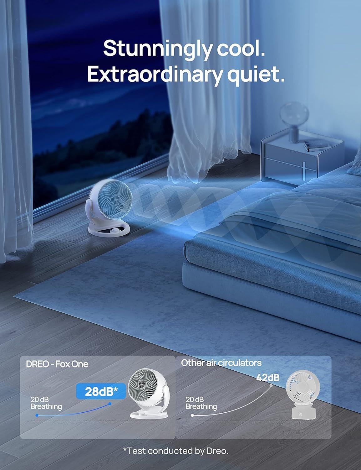 Powerful air Circulation for your entire room: Dreo’s WingBoost system combines deep-pitched blades and aerodynamic design to propel air as far as 70 ft, helping your desk fan to circulate strong cold air throughout your whole room and cooling large areas faster than traditional fans.