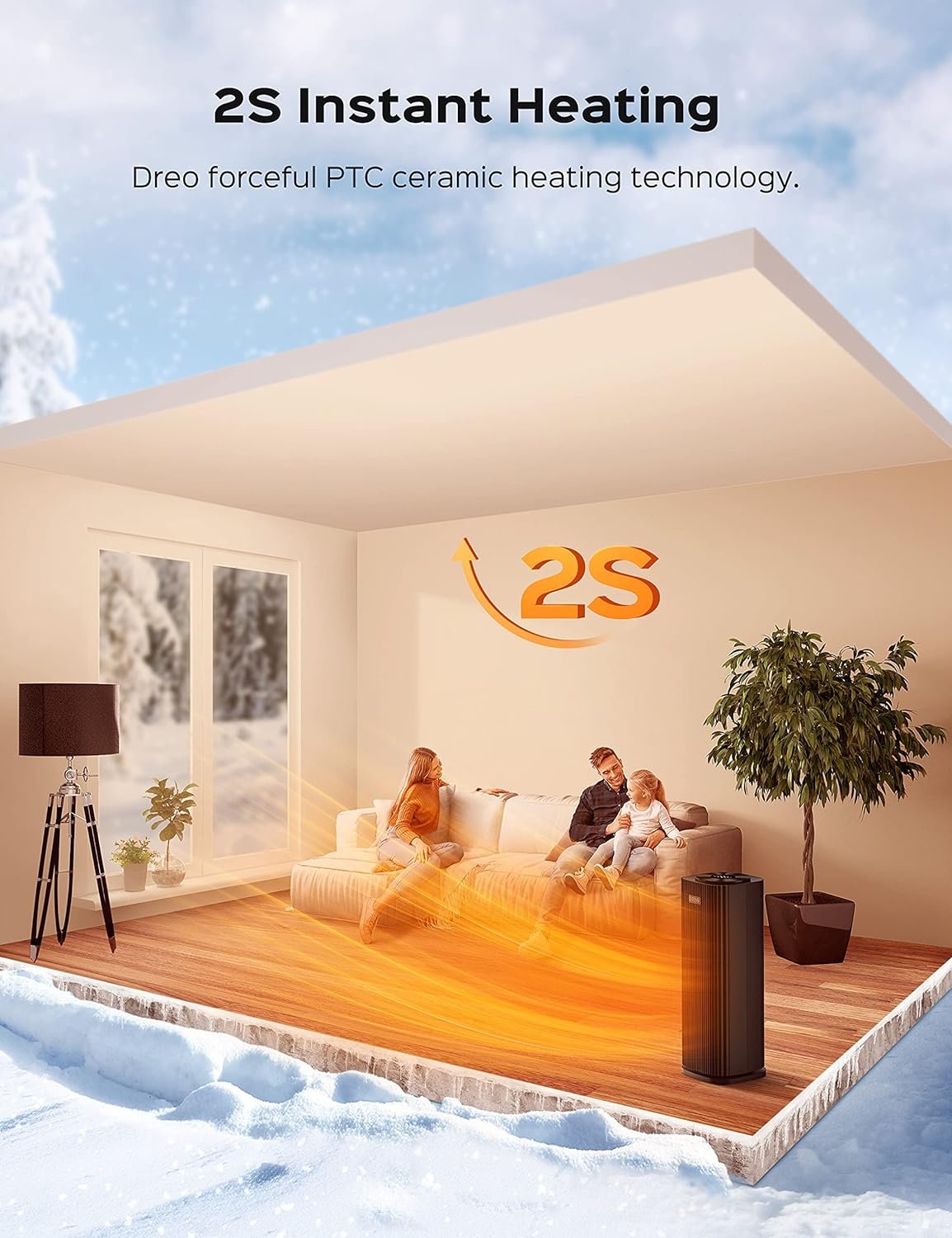 Product 2: 2S Instant Heating: Special ceramic heating quickly heats up in 2 seconds to bring you back to summer. 3 heating modes from 900W to 1500W provide personalizable snug warmth to your office, bedroom, living room, or other rooms in an energy-efficient manner.