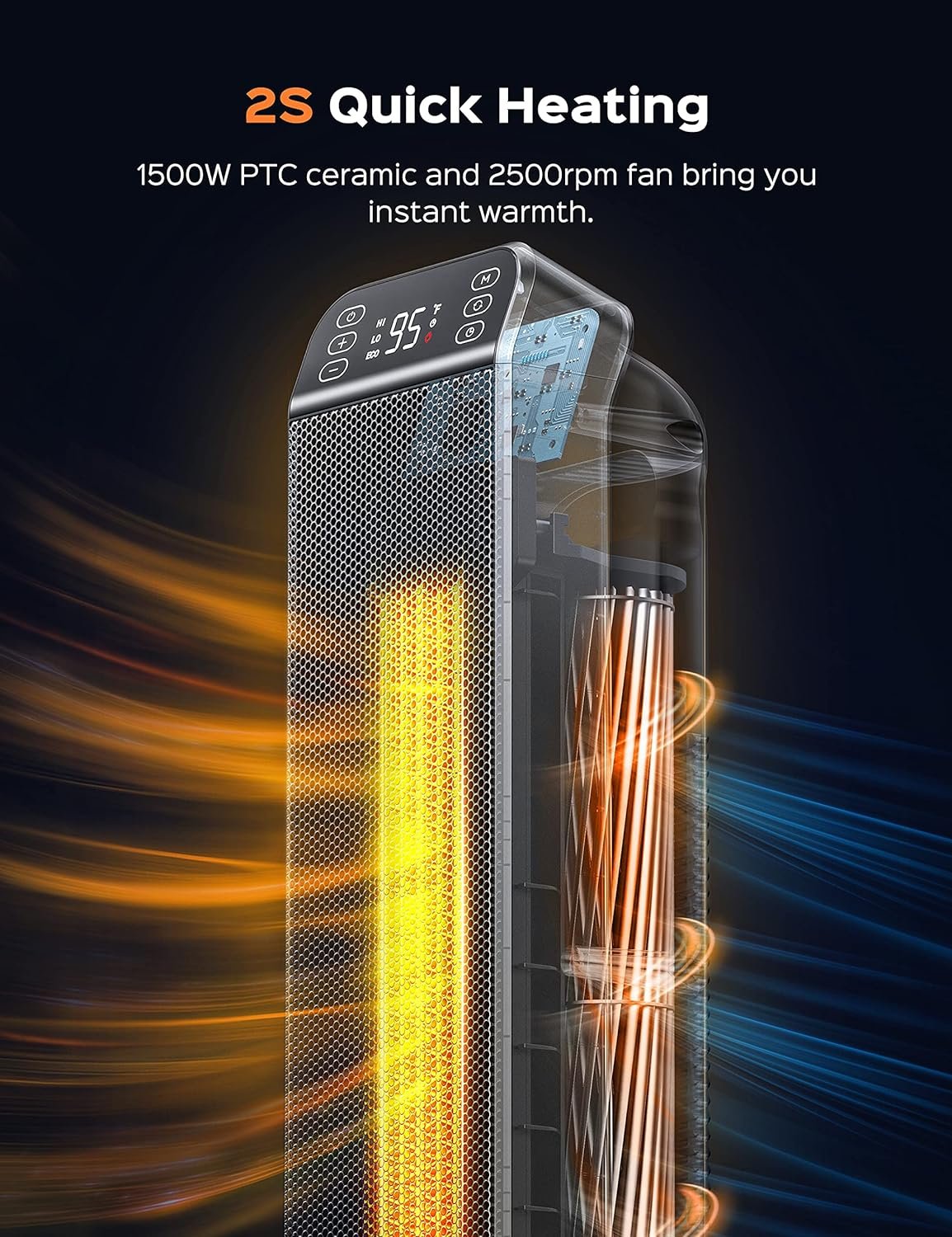 The Dreo Radiator Heater feels heat faster with spindle-shaped openings, 225 mm larger fins and Dual U-shaped heating tubes that double the heat release. The Dreo 24″ Space Heater has powerful 1500W heating that sends out hot air in 2 seconds with 2500 rpm fan for quick heat spread.