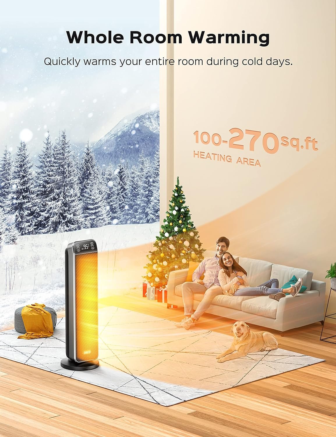 The Dreo Radiator Heater provides efficient 360° circulation of hot air with 1500W high power, keeping your home cozy and warm without drying out the air. Heating coverage up to 300 sq. ft. The Dreo 24″ Space Heater delivers fast heating for small to large rooms with 10 ft/s speed and 70° oscillation.